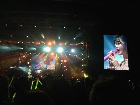 댄스곡으로 구성된 1부가 끝난 후, 이어진 2부에서는 "꽃갈피" 수록곡들을 아이유가 직접 기타를 연주하며 잔잔하게 불렀다. 한국인들이 가장 좋아하는 형태의 서정적인 곡들을 홍콩분들이 어떻게 받아들일는지 매우 궁금했다. 특히 필자 앞쪽에 쪼로록 앉은 젊은 남성들. 주변 사람들은 따라부르기도 하고 야광봉을 흔들며 리듬을 타고 있었는데, 이 세 분은 전혀 미동도 없이 넋을 잃고 그녀를 바라보고 있었다. 혹시 사랑에 빠지는 장면을 목격한 게 아닐까 싶을 정도로 내 마음까지 설레었다. 특히 두 곡의 광동어 노래(囍帖街와 喜歡你)를 아름답게 소화해냈을 때, 홍콩 팬들은 마치 큰 선물을 받은 것처럼 환호를 했다.