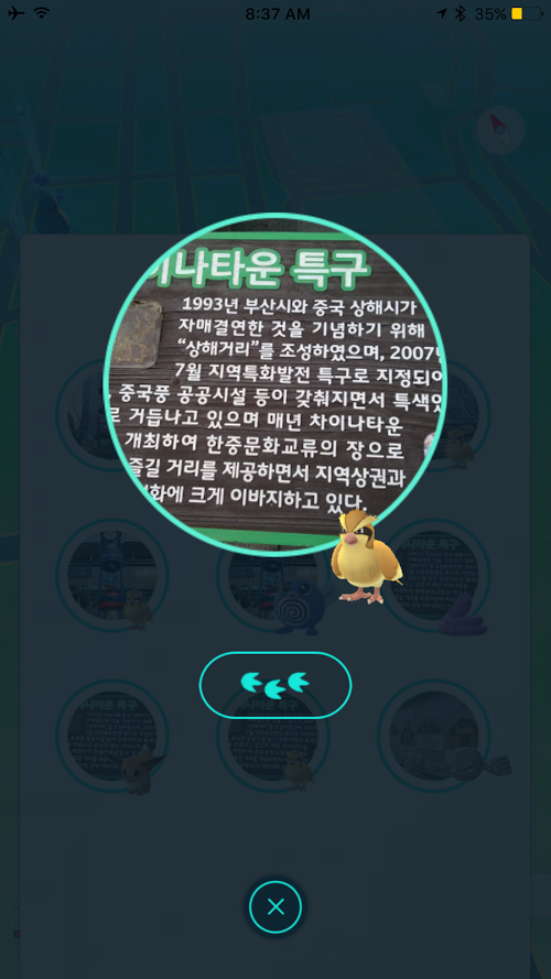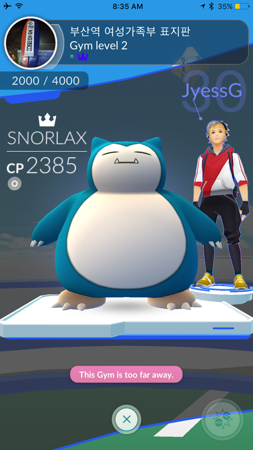 출시가 이루어진 24일 아침, 마침 부산을 방문 중이었기에 포켓몬 고가 정말로 되는건지 궁금하여 얼른 실행시켜보았다. 주변에 있는 포켓몬 고 체육관과 포케스탑들이 한 눈에 들어왔다. 포켓몬 고 마스터로서 한국 출시 첫날의 이모저모를 살펴봐야겠다는 생각에 서둘러 밖으로 나섰다. 이른 시간이었는데도 부산역 근처에서 있는 포켓몬 고 체육관은 이미 레벨 30 혹은 그 이상의 포켓몬 고 마스터들이 포진하고 있어서 이제 막 포켓몬고에 입문한 유저들은 체육관에서 당분간 고전할 것으로 보인다. 그러나 우리 동네에 이런데가 있었나싶은 곳에 포케스탑이 세워져 있다는 것도 새로운 잔재미를 줄 것이다.