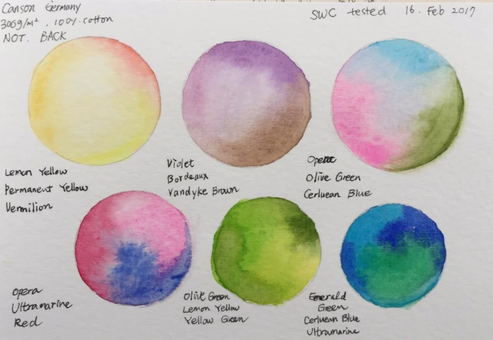 아래는 필자가 응용해본 것인데, 세 가지 색을 세 모퉁이에 칠을 한 후 물만 묻힌 붓으로 풀어주어서 자연스럽게 섞이도록 했다. 이 때는 붓을 잡는 것조차 어색했지만 예쁜 색상의 물감을 다루는 일이라 매우 재미났다.