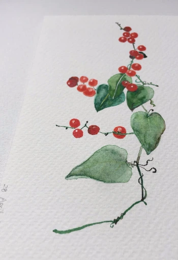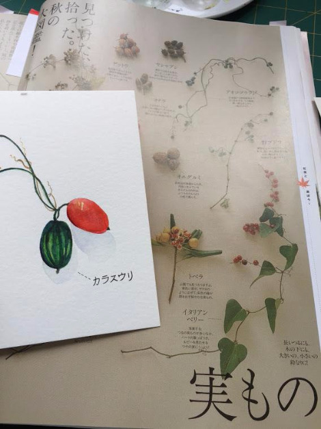 오래전 지인으로부터 선물 받은 일본 식물도감 한 권이 그런 면에서 요즘 내 수채화 교본 역할을 톡톡히 하고 있다. 예쁜 식물과 그 열매들이 아름답게 나열되어 있어서 그리면서도 재밌고 책 내용을 통한 배움도 있다. 다만 책에 있는 사진들은 이미 필터링이 되어 원래의 색상 그대로라고 보기엔 조금 한계가 있기에, 예전에 본 적이 있는 것들은 내 나름의 기억을 되살려서 채색을 하였다.