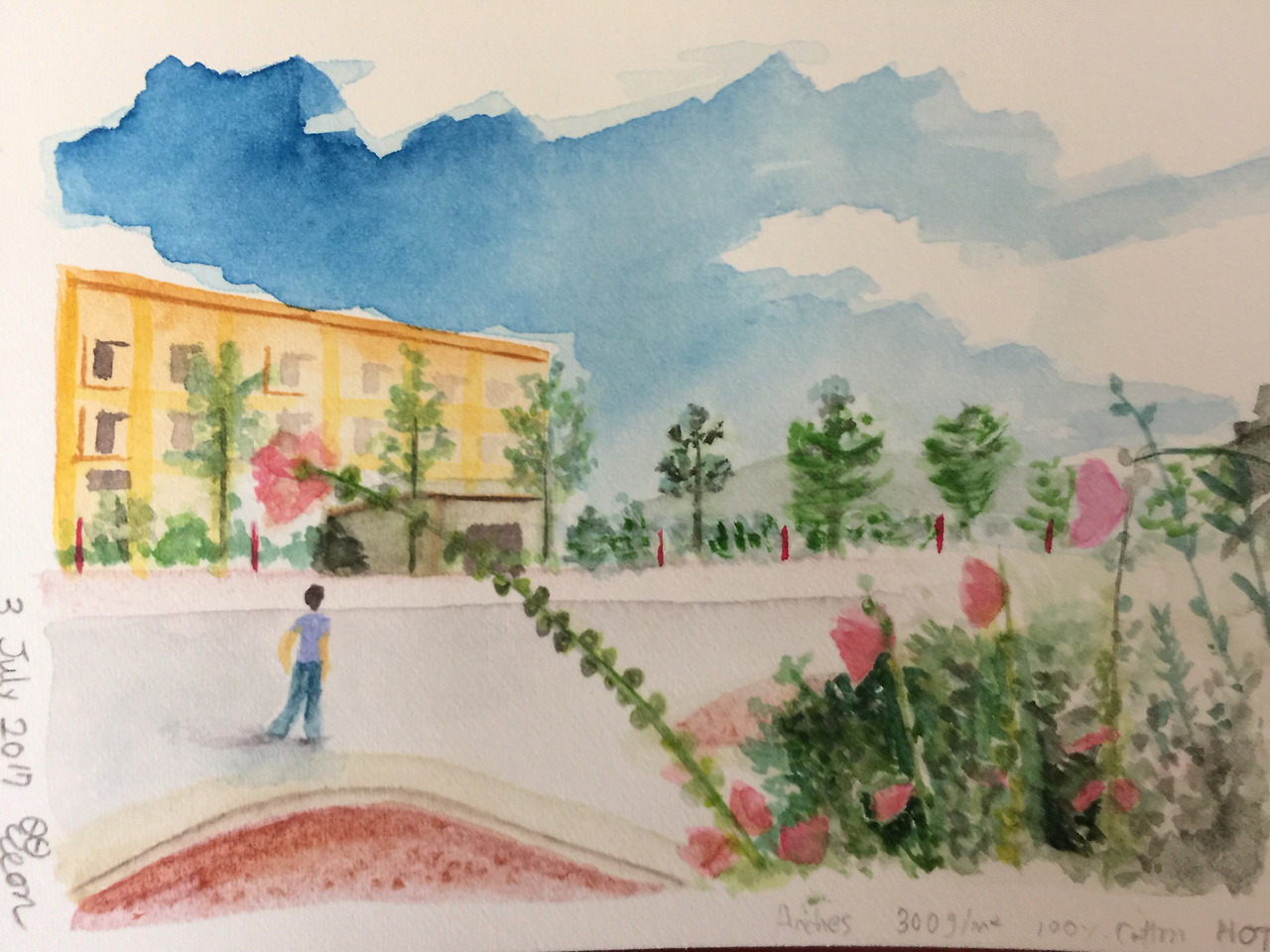 제주대학교를 방문하던차에 접시꽃이 작은 군락을 이루고 소담하게 피어있는 모습을 보니 모른척하고 그냥 지나칠 수 없어서 그림에 담았다. 내리쬐는 뜨거운 정오의 햇살때문인지 오가는 사람은 드물었으나 고즈넉한 분위기도 나름 좋았다.
