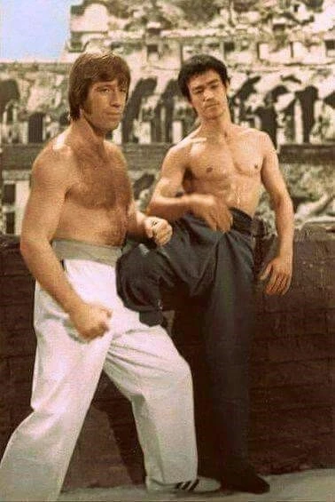 이소룡과 그의 아내(아래 왼쪽)/ 이소룡과 척 노리스(위)