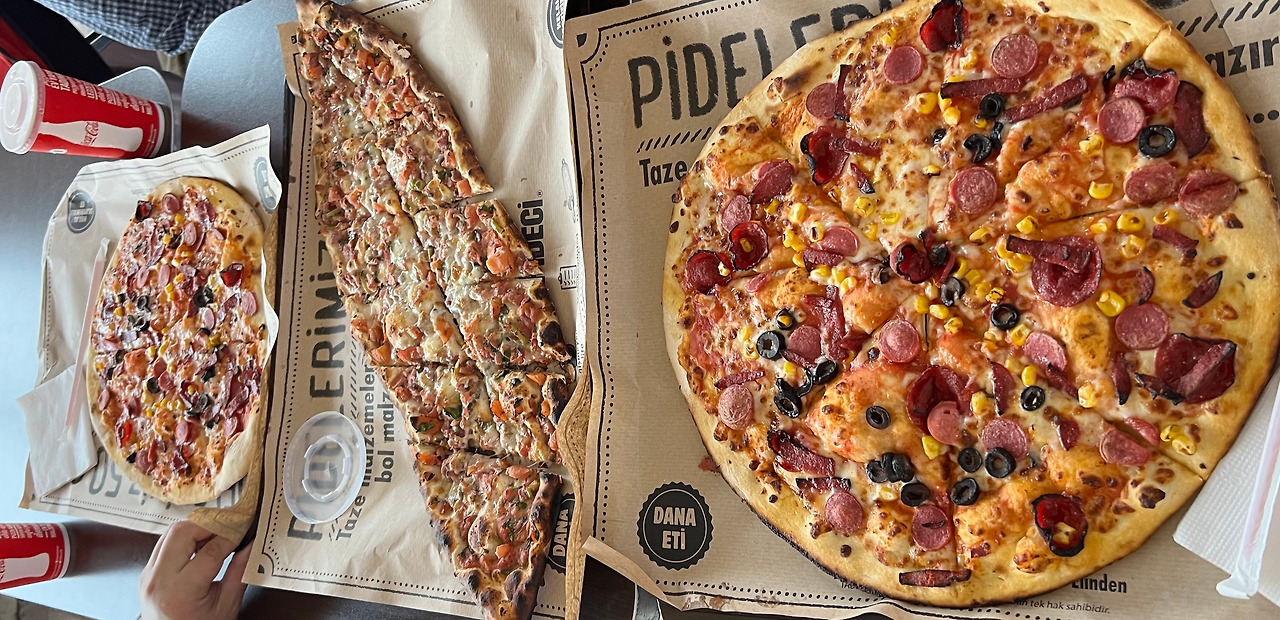 친구의 추천으로 우리의 선택은 SBAPRO 피자이다. SBAPRO 이탈리아 피자를 튀르키예에서 처음 먹어보게 되었다. 큰 사이즈 3판을 시켰는데 한화로 약 3만 원이었다. 성인 5명과 아이 1명이 충분히 먹고도 남았다. 대왕 사이즈는 정말 어마 무시한 크기라고 한다. 현재 그 사이즈는 팔지 않아서 너무나도 아쉬웠다.