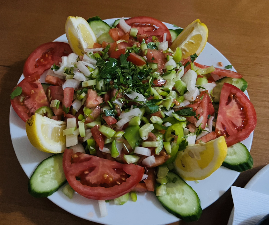 메뉴판으로는 우리가 찾는 그 음식을 찾기 힘들었다. 사진을 보여주면서 이 음식을 주문해 달라고 했다. 샐러드와 라마쿤을 주문했다. 샐러드가 정말 많다고 생각했는데, 나중에 계산을 하고 보니 샐러드가 3인분이었던 것이다.