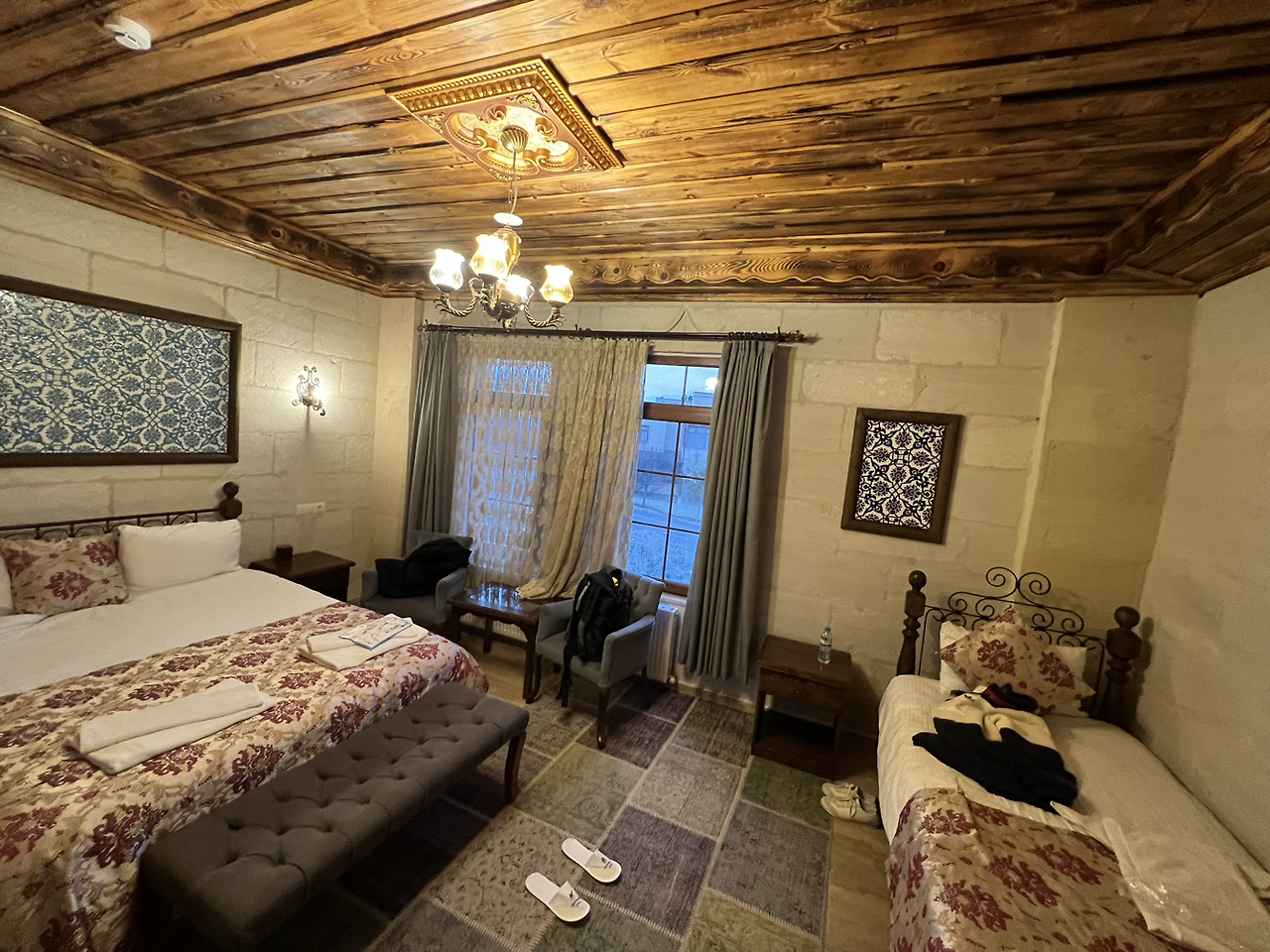 그동안 튀르키예 여행하면서 가장 최적의 호텔이었다(CARAVANSERAI INN HOTEL). 깨끗하며, 적당한 내부의 크기, 화장실, 화장실에 빨래를 널어 금세 마르게 할 라제이터, 따뜻함이 느껴지는 온화함, 맑은 공기, 조식포함, 조식하는 식당에 뷰가 너무 멋짐 등 계속해서 좋은 점을 이야기할 수 있는 곳이었다. 3박 4일 동안 이곳에서 보낼 생각을 하니 너무 좋았다.