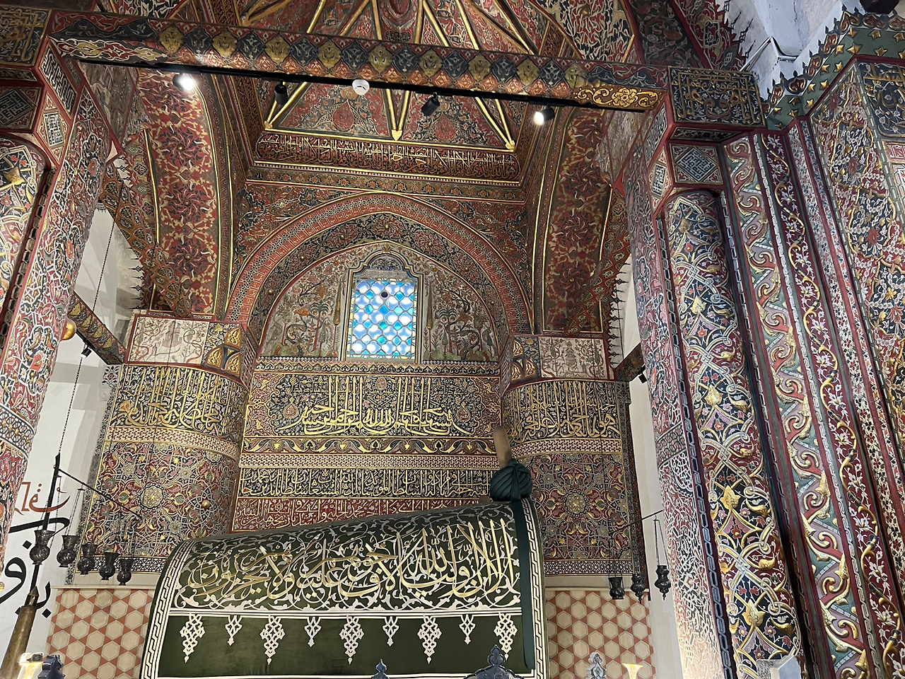 박물관을 들어가 보니 그들의 언어로 쓰인 문자가 하나의 예술이 되어 있었다. 금으로 새겨진 문양이 화려했다. 관에 새겨진 문양과 모자가 무척 인상적이다. 박물관에 전시된 것을 신성시하는 메블라나 신도들도 볼 수 있었다. 그곳에 울려 퍼지는 코란 읽는 소리가 귓가에 맴도는 것 같다.