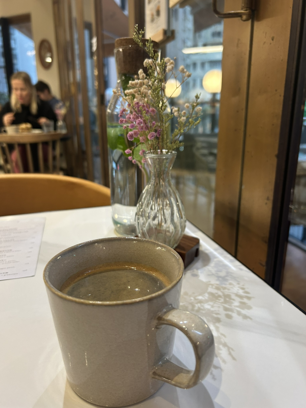동네 가까이 와서 매번 지나는 카페를 지나치다 말고 다시 돌아왔다. 굳이 집에도 있는 커피 여기서 마시기 좀 아깝다, 혹은 빨리 집에 가서 할게 이것도 저것도..라는 생각을 했었다. 매번 이 코지한 카페의 따뜻하고 여유로운 분위기를 동경하고 안으로 뛰어들어서 나도 따뜻해지고 싶었는데 그런 기분을 포기해 왔다. 그런데 오늘은 비를 피하자는 핑계로 쑥 들어왔다. 카페 오는 게 뭐라고 한 발짝이 어려웠나. 헉헉대는 숨을 채 고르지 못한 채 따뜻한 아메리카노를 시키고 자리에 앉았다. 바로 건너에 앉은 젊은 여자분과 눈이 마주쳤고 우린 밝게 웃으며 인사했다. 웃음이 예쁜 파란 눈의 여자는 노트를 꺼내 무언가를 읽으며 라테를 홀짝였고, 나는 휴대폰에 떠오르는 생각들을 적으며 블랙커피로 손을 녹였다. 마음이 따뜻함으로 몽글 채워졌다. 아침에 몇 마디로 약간 기분이 상한 남편에게 미안하다고 메시지를 보냈다. 더 예쁘게 말할 걸 미안했다고.