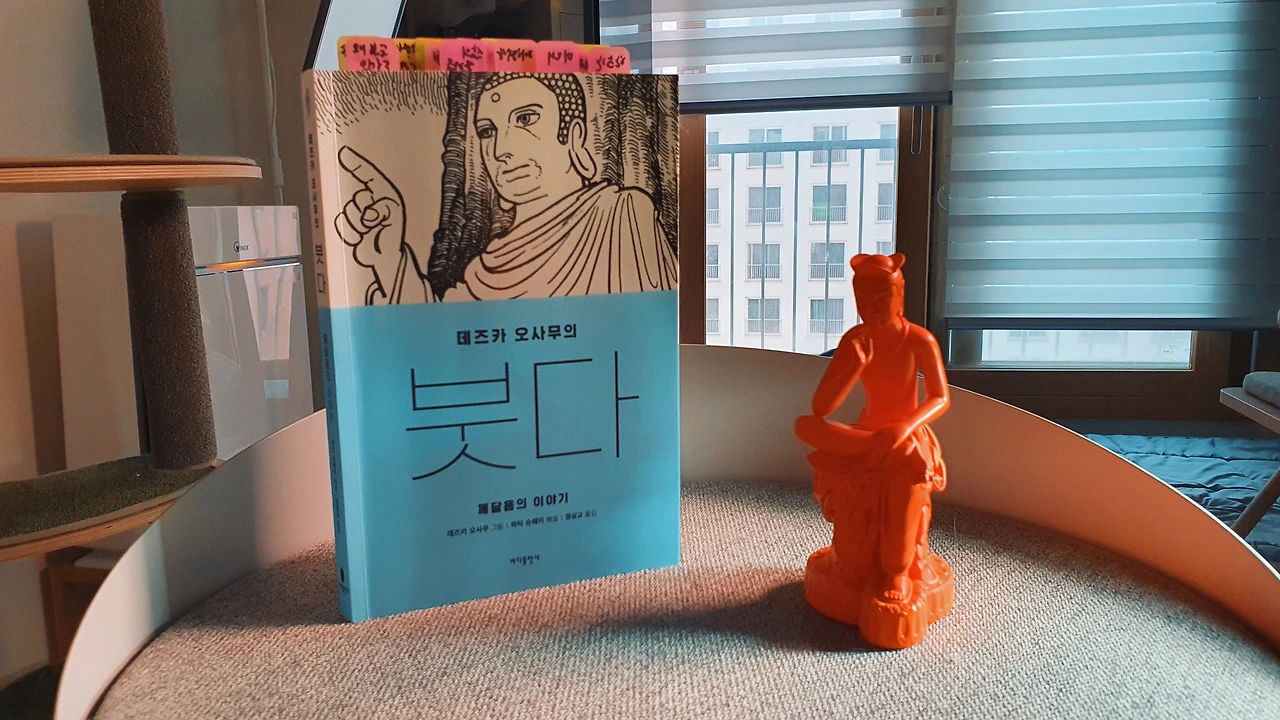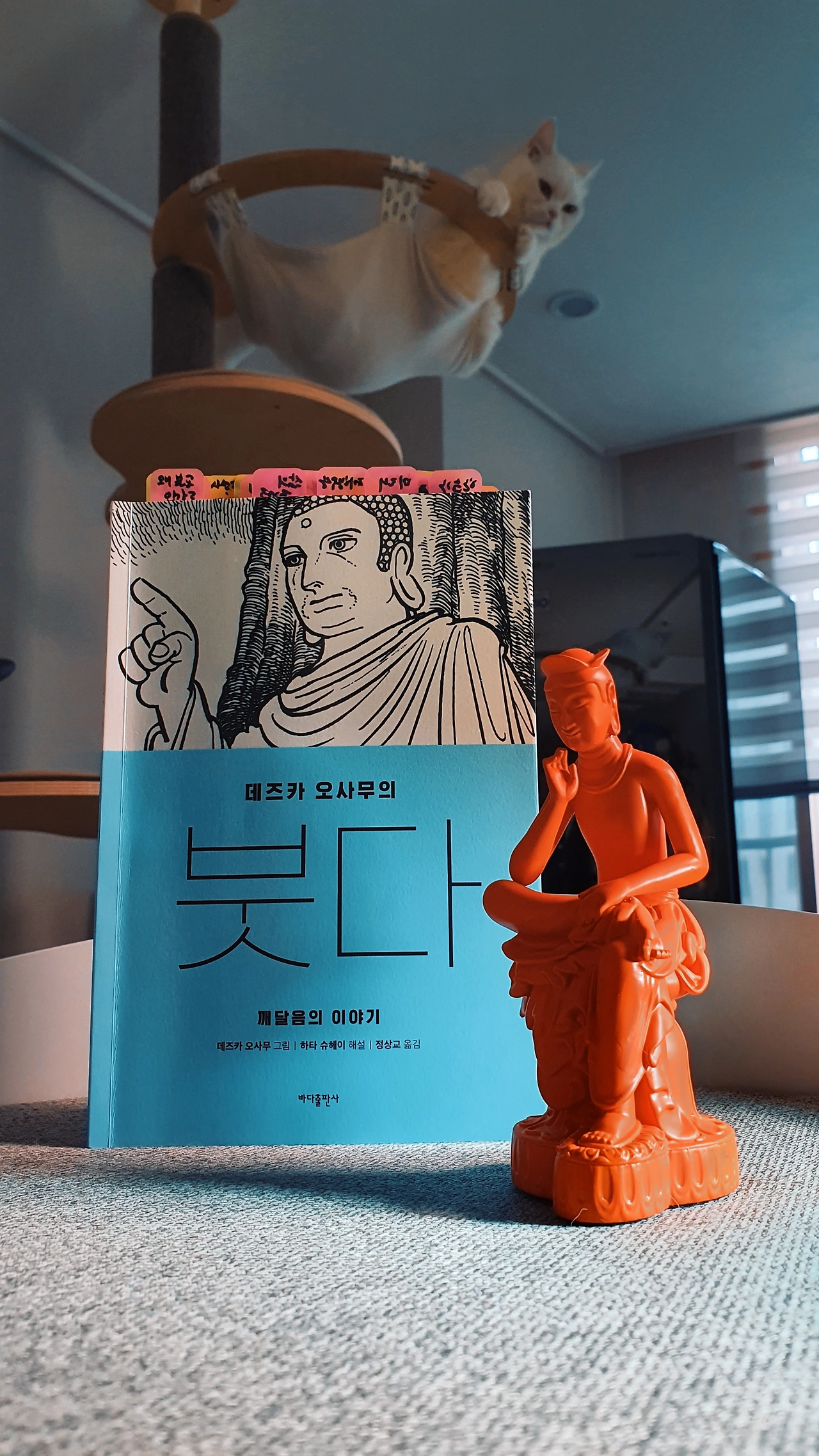 부처님의 일대기를 그린 만화의 한 장면마다 해석을 달고 의미를 더하니 마치 일러스트 에세이를 읽는 느낌입니다. 데즈카 오사무가 붓다라는 이름을 빌려서 독자에게 다정하게 위로를 건네는 느낌입니다. 만약에 부처님이 현시대 사람이라면, 이렇게 인간과 만물에 대한 사랑을 물씬 느낄 수 있는 에세이를 한편 쓰시지 않았을까 궁금해집니다.