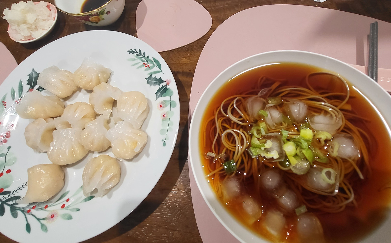 모밀과 만두가 그리웠다. 좋아하던 모밀국수집에서 찐만두랑 같이 먹었던 추억이 있어 비슷하게 만들어 주심. 하지만 모밀 육수가 살짝 아쉬웠다고 다음에는 더 맛있게 만들자고 함!