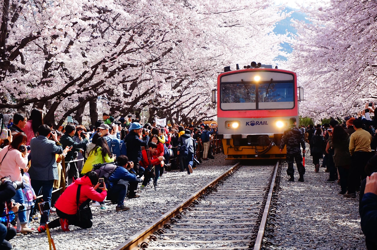 봄날의 진해는 꿈이었다. 진해여행은 버킷리스트의 한 자리를 차지하고 있었다. 경화역에 흩날리는 벚꽃 사이로 들어오는 벚꽃 열차의 모습은 퍽이나 달콤했다. 실상 진해 경화역은 전국 사진가들이 다투어 사진 전쟁을 벌이는 예쁘지 않은 모습이었고, 사진가들 아니라도 사람으로 덮여 지친 표정을 가진 곳이었다. 그럼에도 가고 싶었던 건 꿈결 같은 그 모습을 대하고 싶은 마음이 더 컸기 때문이다. 열차가 경화역에 들어서자 솜뭉치인 듯 눈 뭉치인 듯 보였던 벚꽃이 한 잎 한 잎 흩날렸다. 가득한 인파에도 출사 전쟁터의 모습에도, 분명 꿈을 대했다. 이면의 예쁘지 않은 모습은 잊힐 만한 달콤함이었다.
