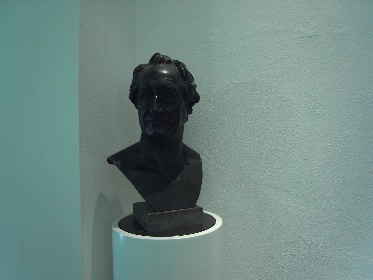 프랑크푸르트 역을 나와 오른쪽으로 한동안 걷다 보면, 어느새 현대적인 건물들은 사라지고 고풍스러운 건물들이 모습을 드러낸다. 뢰머 광장(Römerberg)이 있는 구시가의 중심은 현대적이던 프랑크푸르트의 첫인상과는 많이 달랐다. 도시의 구시가에서 중후하게 멋스러운 외관이 마음에 들던 괴테 하우스(Goethe House)를 만났다. 괴테 하우스는 별 관심 없던 프랑크푸르트를 의미 있는 도시로 만들어준 공간이다. 괴테 하우스 안으로 들어가면 먼저 괴테 관련 기념품이 즐비한 작은 상점 겸 서점이 보인다. 가방, 열쇠고리, 작가의 작품을 담은 책, 화보 등 다양한 기념품 중 작가의 초상이 그려진 엽서 몇 장을 골랐다. 비록 엽서지만 그렇게 괴테를 소유하며, 상점을 거쳐 입구를 지나 괴테 아트 갤러리와 괴테 하우스로 갔다. 멋진 표정의 괴테 두상이 맞이하는 공간에서 그의 묵직하고 여유 있는 표정을 마주했다.