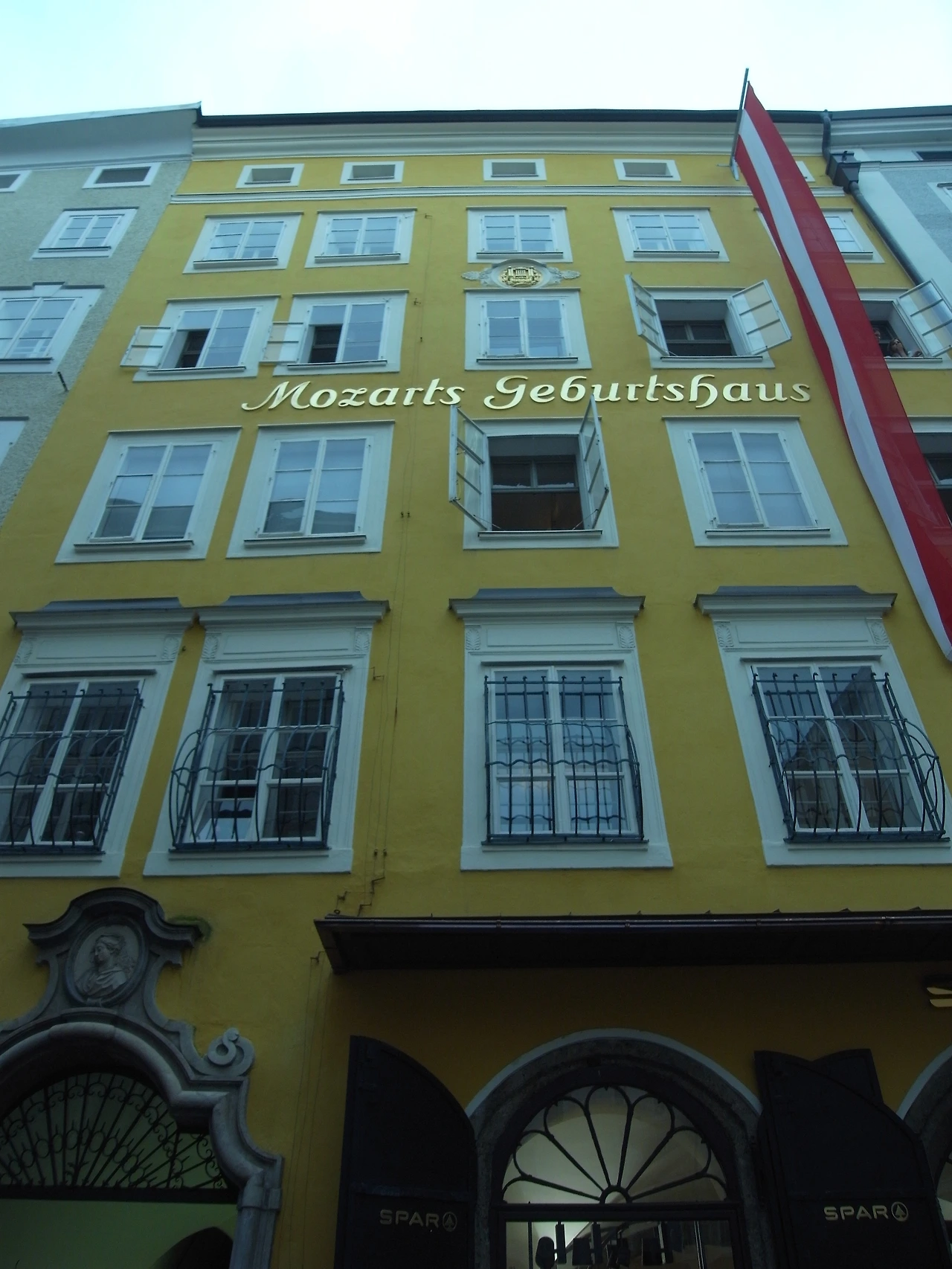 구시가가 시작되는 길목에 샛노란 건물색이 인상적인 모차르트 생가가 자리하고 있고, 생가를 지나 오른쪽으로 가면 그의 이름을 딴 광장 이 있다. 광장에는 그의 모습을 꼭 닮은 동상이 서 있다. 위대한 음악가의 동상은 아담한 주변 건물과 조화를 이루고 있다. 동상은 후세 사람들이 특정 인물을 기억하고 싶은 방식을 반영해 만드는 것이니, 모차르트의 실물과는 차이가 있을 수 있겠지만, 적어도 그를 인식하는 사람들의 긍정적이고 애정 어린 시선을 엿볼 수 있는 기념물이다.