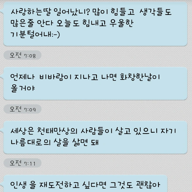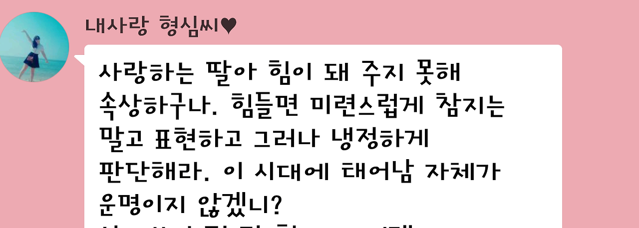 이 문자를 받고 내가 얼마나 힘이 되었는지