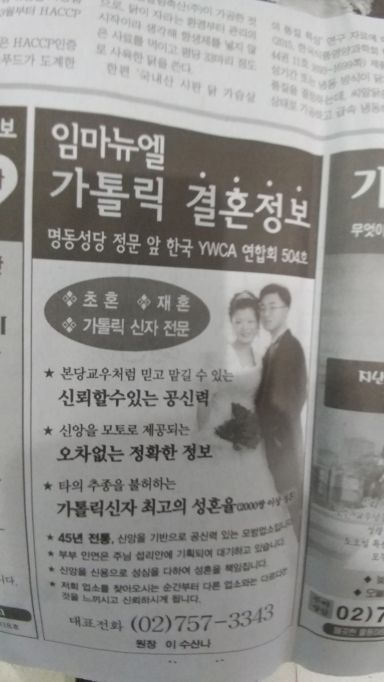 모 신문사에 광고된 가톨릭 결혼정보회사