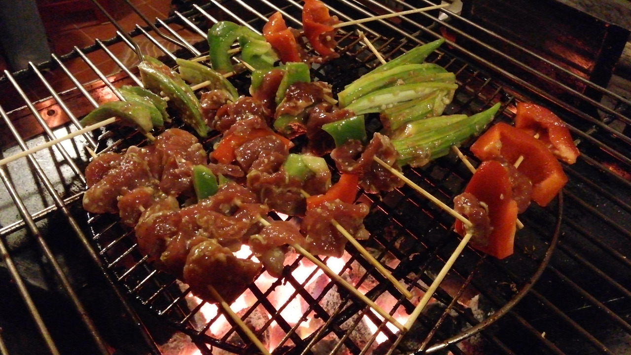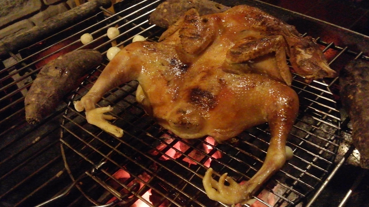 직접 준비한 BBQ, 머리와 발이 붙어있는 통닭구이