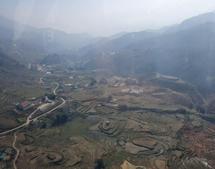 썬월드 판시판 레전드(Sun World Fansipan Legent)로 가는 케이블카에서 내려다본 사파 다랭이논