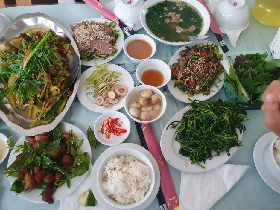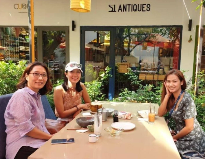 공복 상태이기도 했지만, 베트남 사람들이 가는 곳이 특별한 곳이 있을까 궁금했었던 차라 선뜻 그들을 따라나섰다. 평소에 오토바이를 타고 다니는 D가 나를 데리고 간 곳은 H의 빨간 스포츠카였다. 아이가 셋인 H는 아침마다 운전해서 아이들을 학교에 데려다주고, 오후 픽업한다고 했다. H는 익숙한 솜씨로 좁은 골목을 날렵하게 요리조리 빠져나가더니 사덱 디스트릭트(Sadec District) 근처에 차를 세웠다. 사덱 디스트릭트는 예쁜 그릇을 파는 사덱 숍과 각종 편집숍, 공방들이 옹기종기 모여 있는 곳으로 종종 커피를 마시러 가는 곳이었다. 특별한 곳을 기대했었는데, 예전에도 와봤던 곳이라 아쉬웠지만 오랜만에 친구들과 카페테리아에서 아침을 먹는 것도 좋겠다 싶었다. 주문을 하려고 하니 D가 직원에게 아침 메뉴가 뭐가 있는지 베트남어로 물어보더니 나에게 소개해주며 주문하라고 했다. 예전에 왔을 때는 없었던 메뉴인데, 심지어 메뉴판에는 그 메뉴가 없었다. 그날 재료에 따라 준비되는 아침 메뉴였다. 나 혼자 왔으면 기껏해야 커피에 반미나 샌드위치였을 텐데, 덕분에 아침부터 야채와 고기가 가득 든 쌀국수를 먹을 수 있었다.