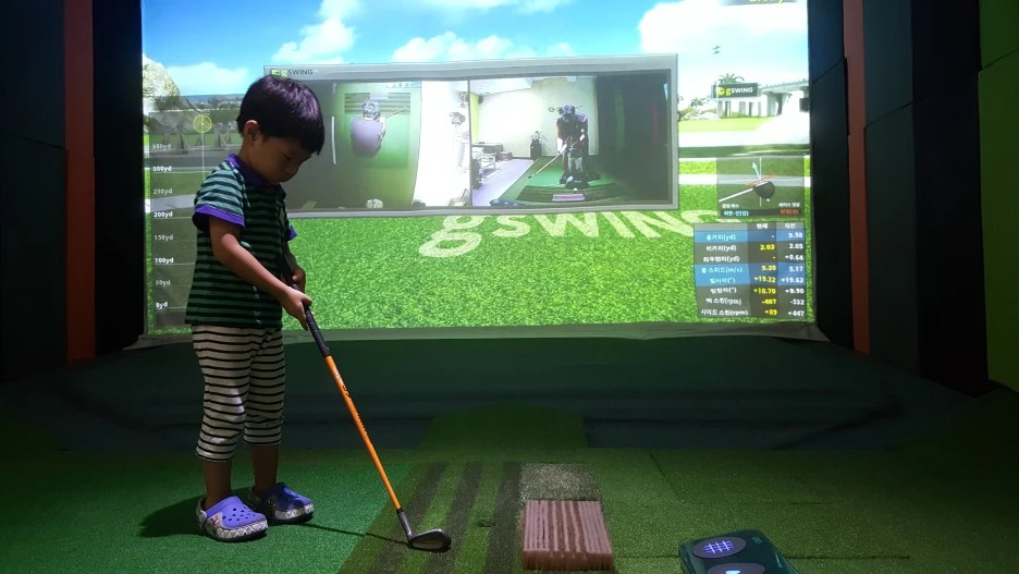 엄마빠 따라 스크린 연습장에 따라온 골린이, 당시 4세