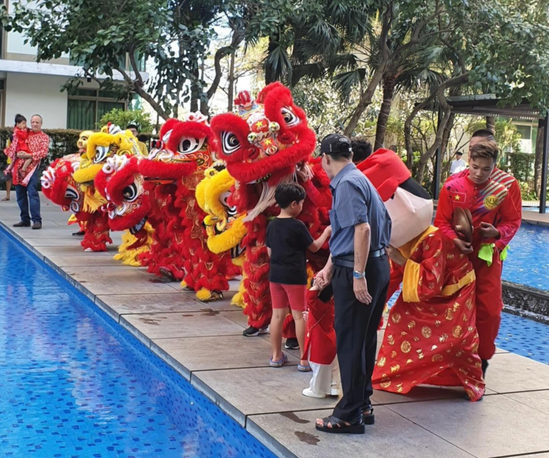 뗏 연휴가 끝나고 새롭게 업무를 시작할 즈음이면 사자춤을 볼 수 있다. 건물 입구에서 귓전을 울리는 타악기로 연주되는 음악에 맞춰 사자들이 춤을 추고 재주를 부리다 멈추면 리 씨(Li xi, 복돈)를 직접 사자에게 준다. 베트남 사람들은 정성껏 빨간 봉투에 넣어서 사자에게 주었지만, 우리는 외국인이니까 아이들이 20만 동짜리 팔랑거리는 지폐를 들고 가서 준다. 애들은 마냥 신납니다.