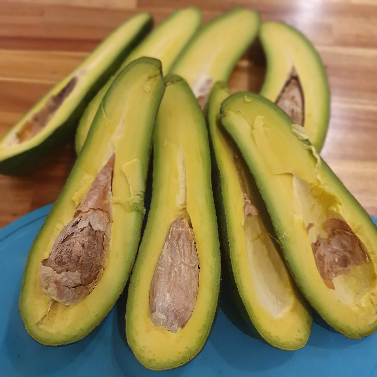 아보카도를 후숙 시키는 방법에는 냉장고 위에 올려두기, 포일에 싸 두기, 사과와 함께 두기, 쌀독에 넣어두기 등 여러 가지가 있는데, 개인적으로는 신문지로 싸서 두는 게 제일 편했다. 한국에 온 지금도 신문지로 싸서 실온에 두고 수시로 상태를 체크하며 후숙 시키고 있다. 후숙을 지연시키려면 냉장고에 넣어두는 게 좋다고 해서, 아보카도가 말랑해지면 냉장고에 넣어두고, 당장에 먹지 않을 것 같으면 잘라서 냉동실에 보관한다. 우유랑 갈아먹으면 훌륭한 스무디가 된다.