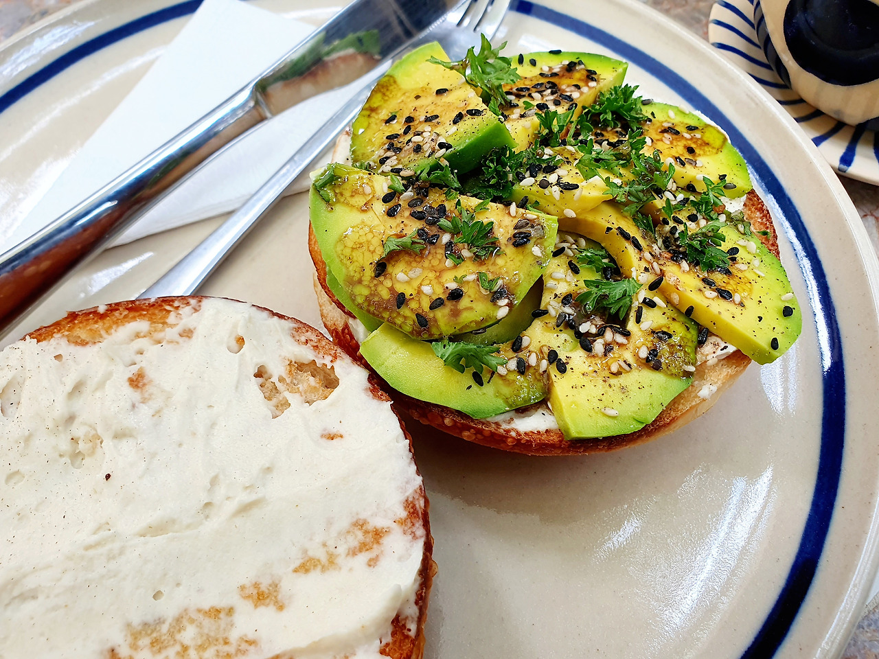 아보카도 토스트와 아보카도 베이글, 아보카도는 크림치즈와 궁합이 좋다