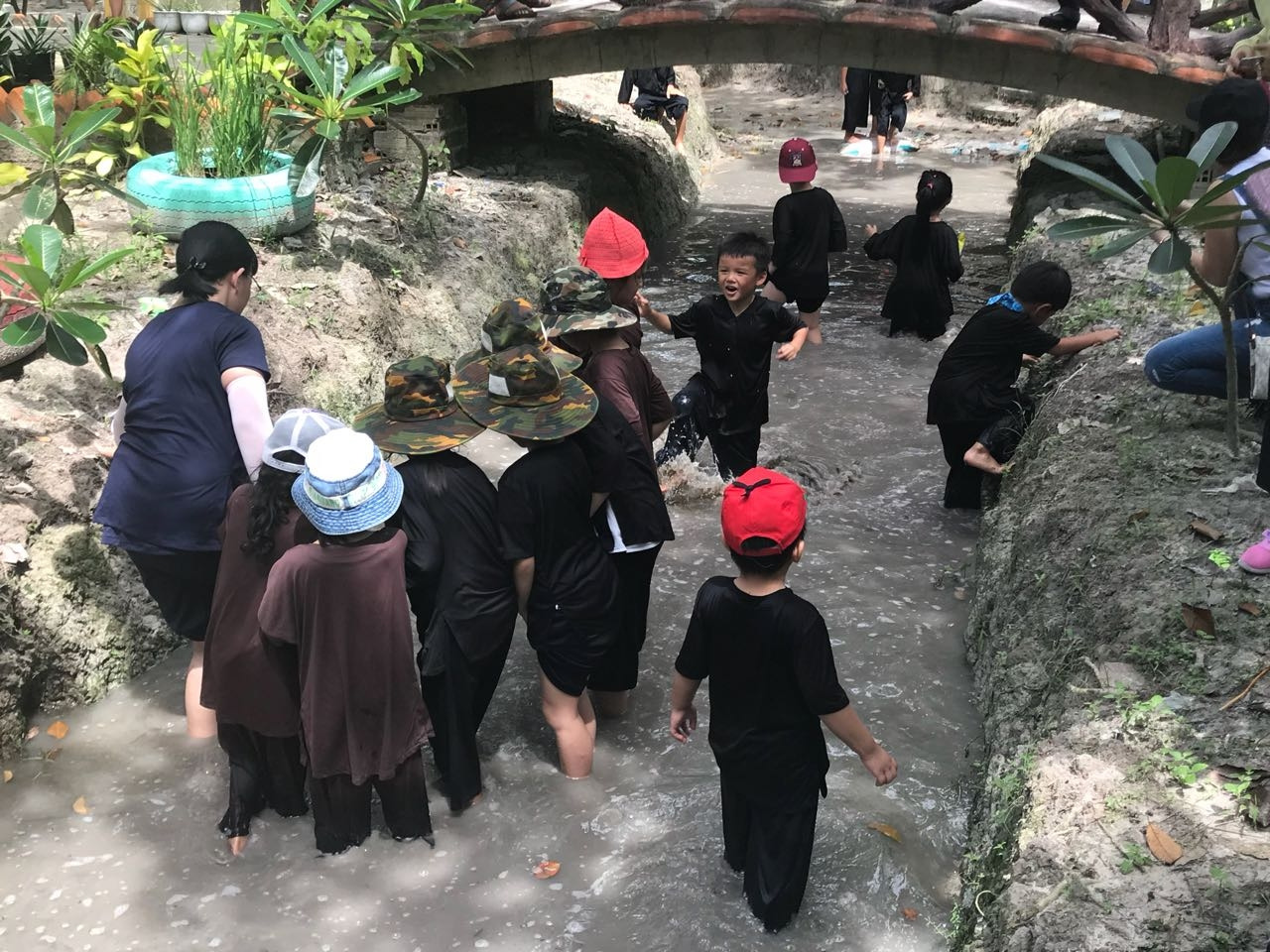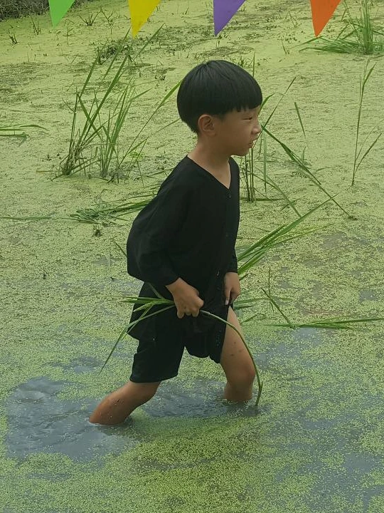반 친구 엄마를 발견하고 따라간 곳에서는 아이들이 줄을 서서 진흙탕물로 들어가고 있었다. 당시만 해도 예민함 끝판왕이라 모래 뭍는 게 싫다고 해변에도 안 가던 아들 1호는 들어가지 않겠다고 했고, 2호는 들어가긴 했지만 물고기가 없는 것 같다며 곧 탈출을 시도했다. 미끄덩한 물을 맨발로 밟아가며 물고기를 잡아야 하는데, 기분이 상쾌하지는 않았던 것 같았다. 열심히 진흙탕물에서 실랑이를 하던 반 친구들은 얼굴에 온통 진흙을 묻힌 채 결국 물고기 두 마리를 잡고 내고야 말았다.