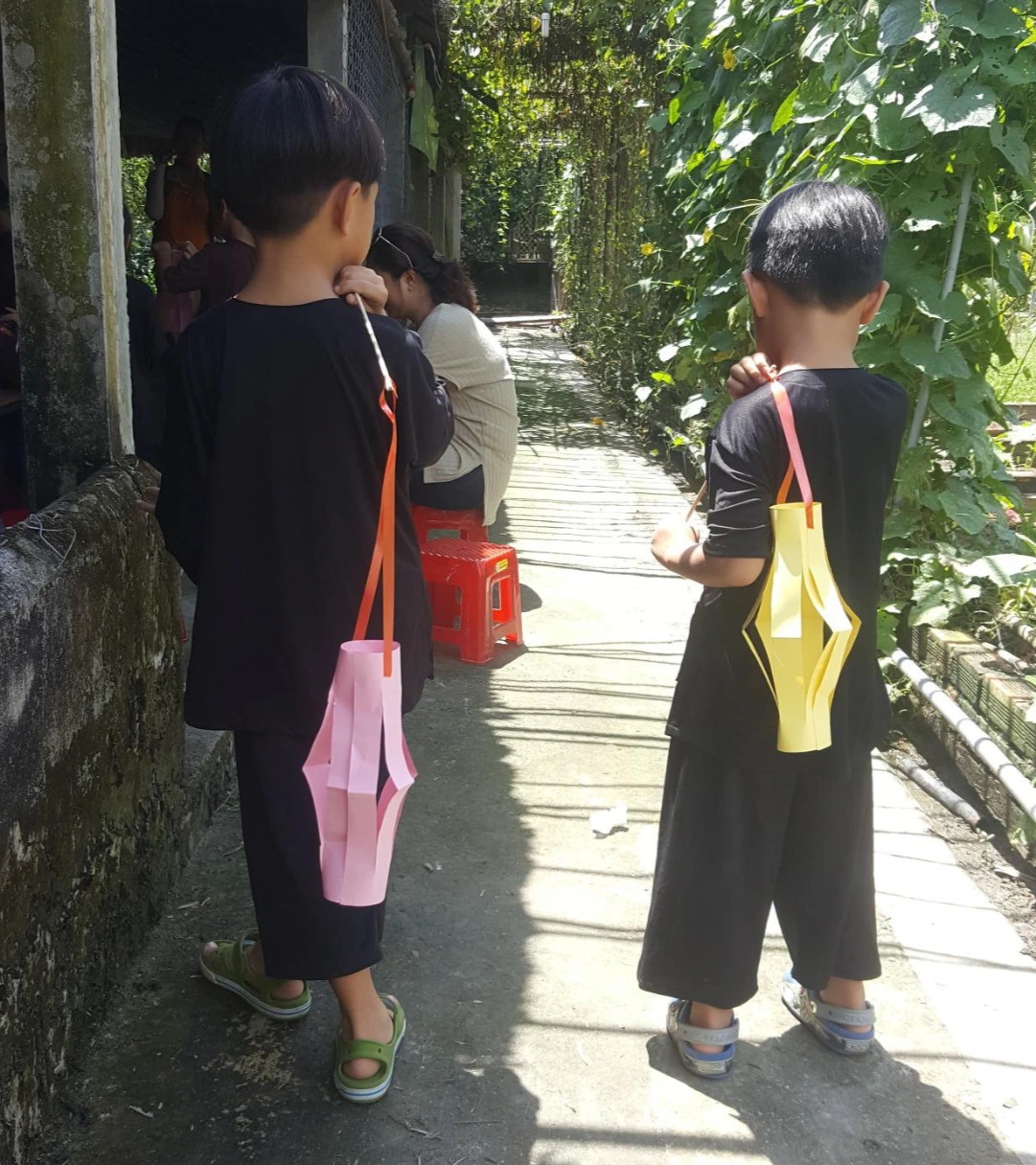 매년 뗏쭝투(추석)가 되면 학교에서는 수업 시간에 종이 랜턴을 만들었다. 종이를 자르고 붙여서 랜턴 모양을 만들고, 손잡이까지 만들고 나면 완성되는데, 여기서도 랜턴 만들기 프로그램이 있었다. 그래도 학교에서 만들어 본 적이 있어서 그런지 곧장 만들었다. 종이 랜턴을 들고 포즈까지 잡으니 제법 그럴듯해 보였다.