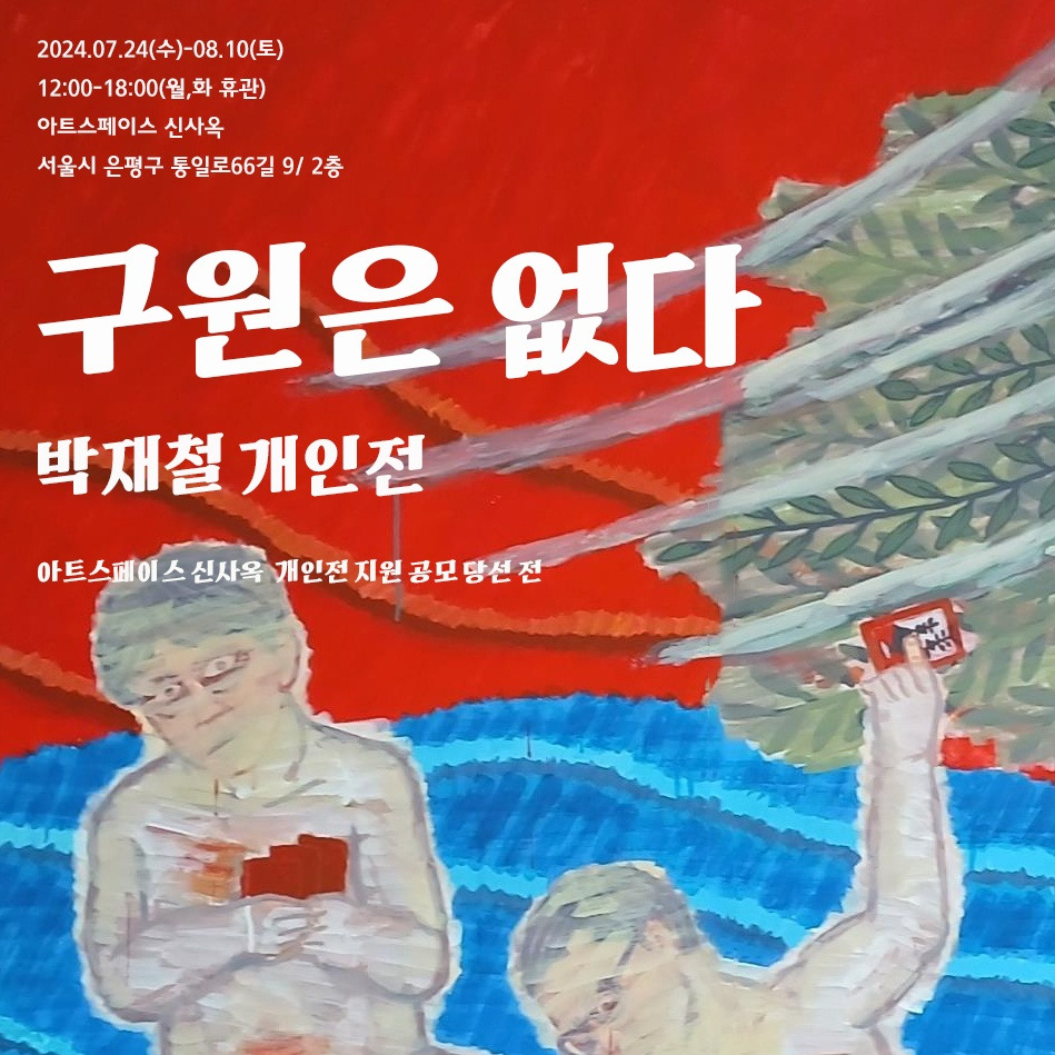 아트스페이스 신사옥 운영자인 이지영 옥정호 두 미술작가의 ‘전시운동’ 일환에서 일 년에 한 번 공모제를 통해 당해 연도 국가기금을 받지 않은 작가의 미발표 작을 중점으로 개인전을 열어주며 미술작가로서 가진 것 안에서 다시 미술작가와 나누는 프로젝트를 진행하고 있다. 그 첫 포문을 연 선정자는 박재철 작가이다. 작가의 작품 제목이기도 한 이번 전시 《구원은 없다》는 2016년부터 현재까지 박재철 작가가 천착해 온 작품의 내용과 달라진 그리기 방식을 한 전시 공간에 전개하는 것으로 기획된다.