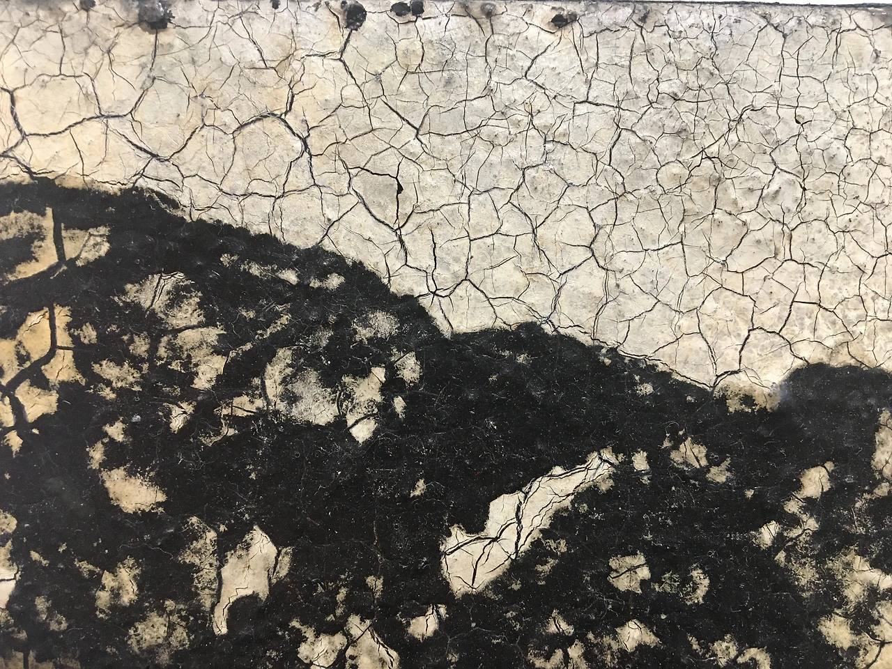 2004년 제작 작품들은 두터운 먹과 미디엄의 균열 기법을 통해 그 틈들의 군집과 표면의 높낮이에서 오는 밀도감에서 에너지를 자아낸다면 최근작들은 섬의 매력을 볼 수 있는 그 시간대로 관객을 쉬이 초청해낸다.