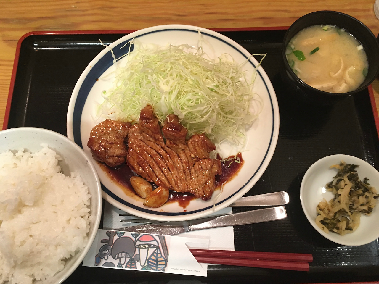 어쨌든 좀 짜다. 소스는 또 끈적 그리고 되직하다. 고기 옆에 채 썬 양배추가 산더미처럼 쌓여있다. 이건 장식용일까 하면서 주변을 보니 일본인 손님들은 양배추를 싹싹 먹고 나간다. 일본인은 양배추를 좋아하는 걸까. 나도 괜히 한 번 입에 넣어본다.