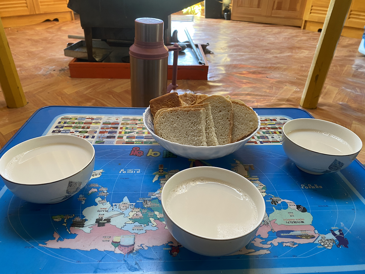 마지막 날 아침에도 빵과 함께 주셔서 같이 먹었는데 첫날 우즈벡 식당에서도 먹었던 빵도 그렇고 쫀쫀하고 시큼한 발효향이 그대로 나는 빵이었다.