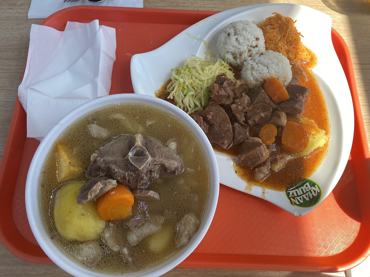 하르허릉에 가는 길, 휴게소에서 먹었던 식사. 국물요리의 이름은 랍샤. 가이드님이 알려주셨다. 엄청나게 감칠맛 나는 갈비탕 같은 맛의 맑은 국물인데 안에 투박한 몽골식 칼국수면도 조금 들어있었다.