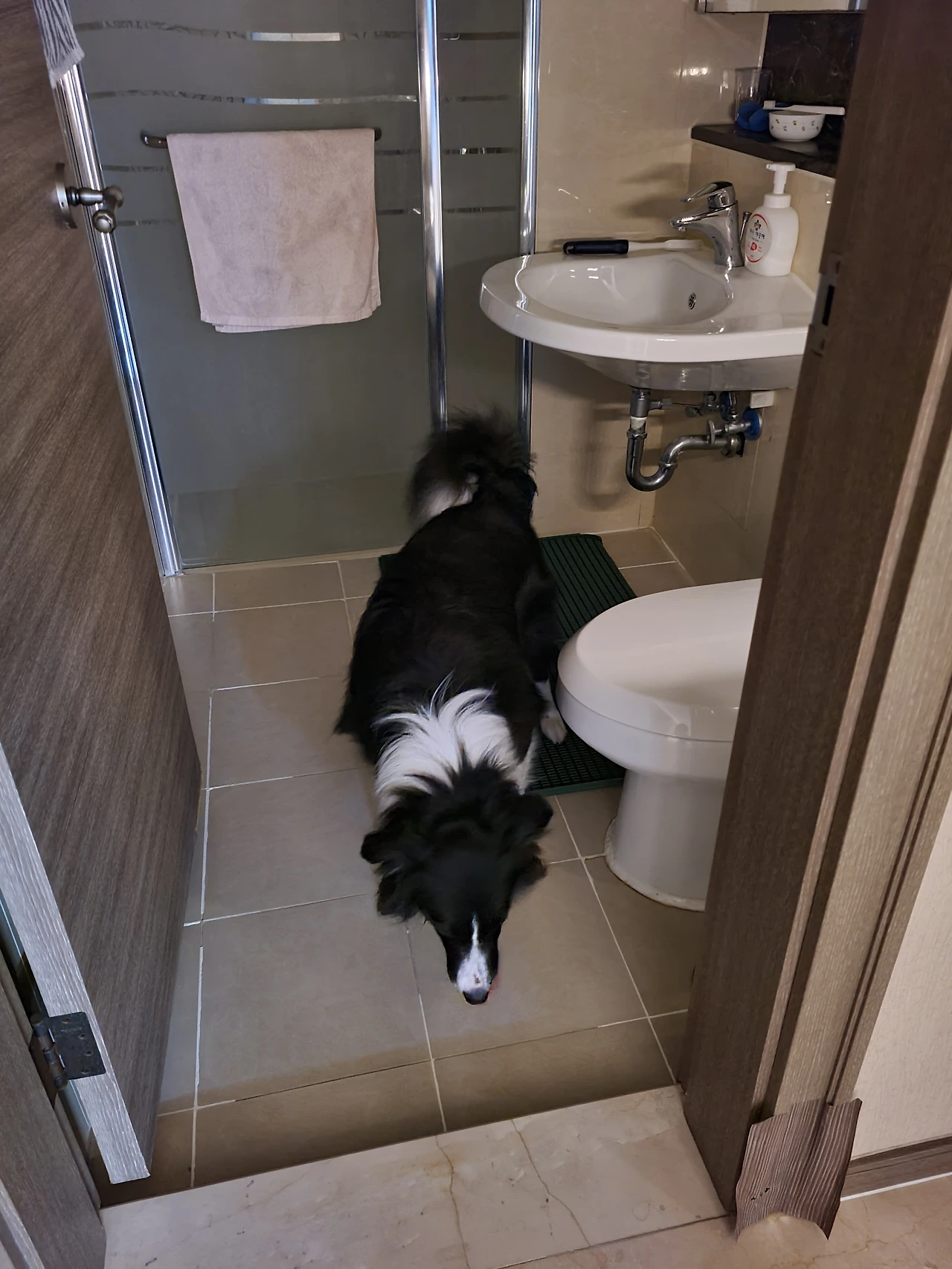 2023년 12월 말, 배변 장소를 거실에서 화장실로 옮기기로 했다. 간단히 아내와 상의 후 동일한 배변판을 하나 더 구매했다. 화장실의 안전문을 제거하고 배변판 2개를 연결하여 세면대 아래에 놓아두었다. 청소가 쉽도록 오물 받이는 떼어내고 톱으로 한쪽면을 잘라내어 물이 쉽게 빠지도록 했다. 샤워기 호스도 긴 것으로 교체했다. 한동안 배변 유도제도 함께 뿌려 주어 적응할 수 있도록 했다. 센서 등도 하나 달아 주었다. 그렇게 그의 전용 화장실을 만들었다. 이후로 지금까지 잘 유지하고 있다. 이제는 배변 패드도 유도제도 사용하지 않는다. 처음 입양 후 파양을 해야 할지 고민이 많았는데 함께 살기 위해 잘 따라준 그에게 칭찬해주고 싶다. 이렇게 배변 훈련은 일단락되었다. 집사는 아무나 하는 것이 아니라는 것을 느끼며, 세상 모든 집사들에게 심심한 존경을 표하는 바이다.