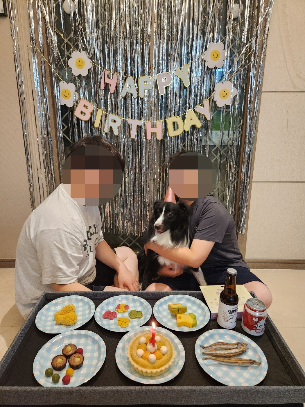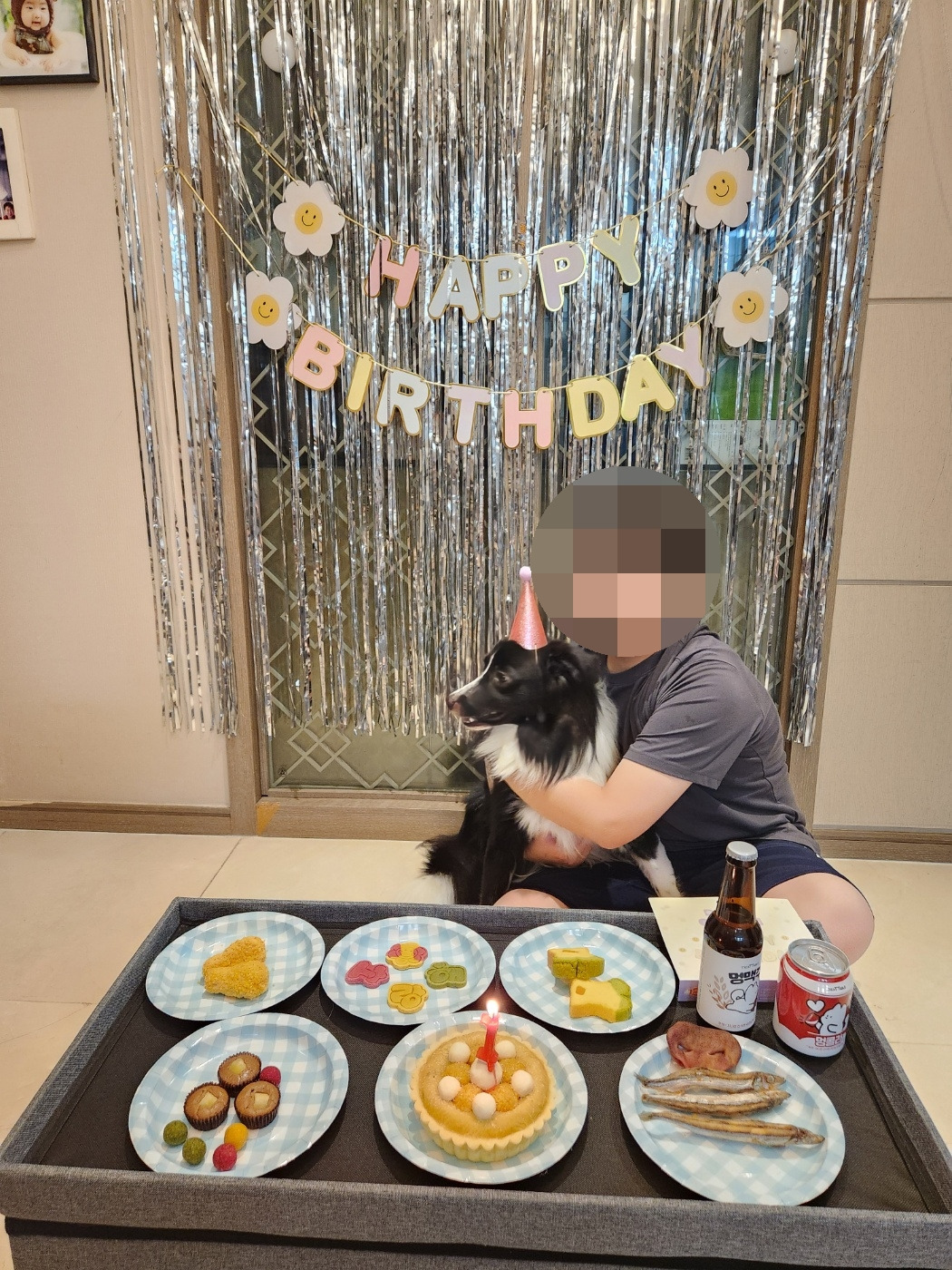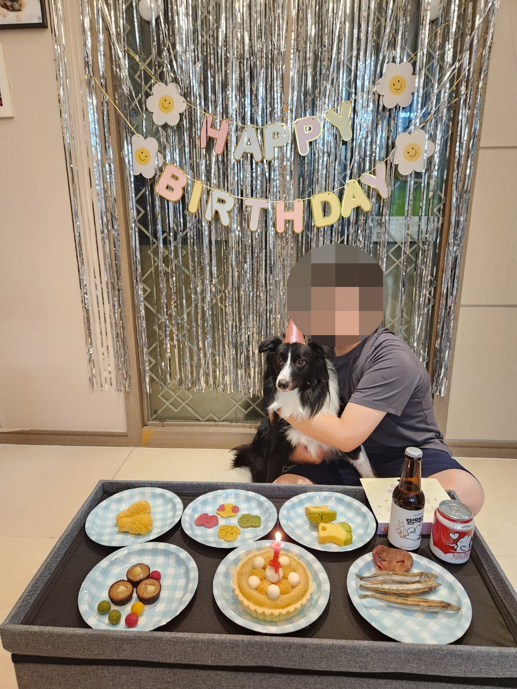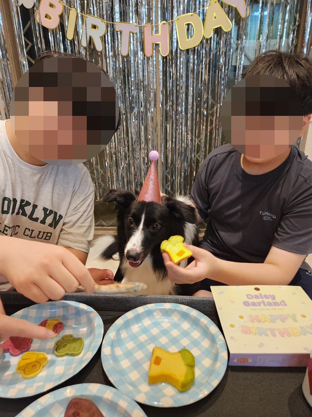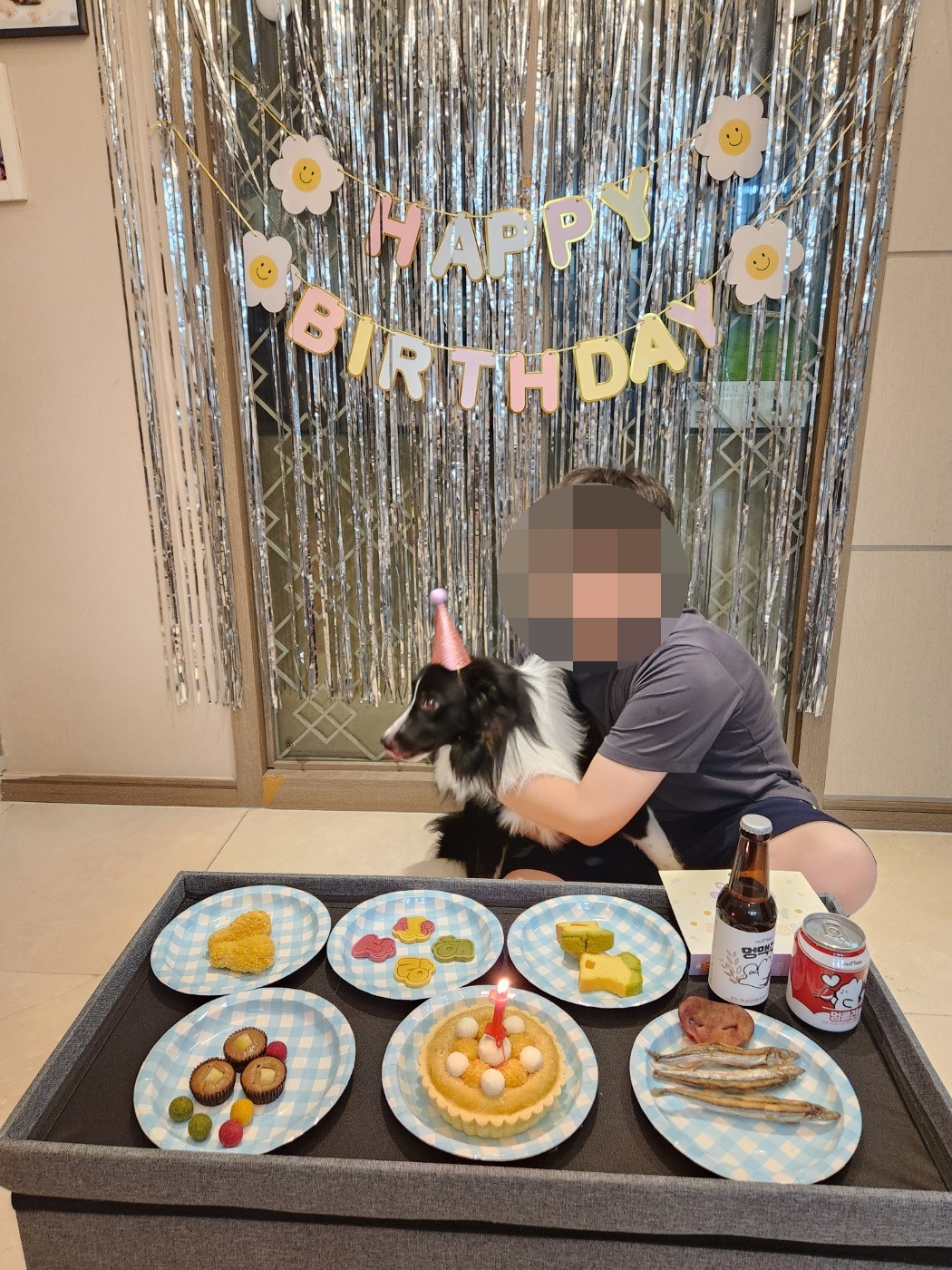살다 보니 개 생일을 해볼 줄이야 상상도 못 했지만, 아내와 아이들이 좋아하니 그거로 됐다. 암튼 오래 함께 하기를...