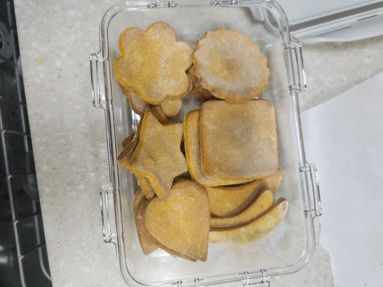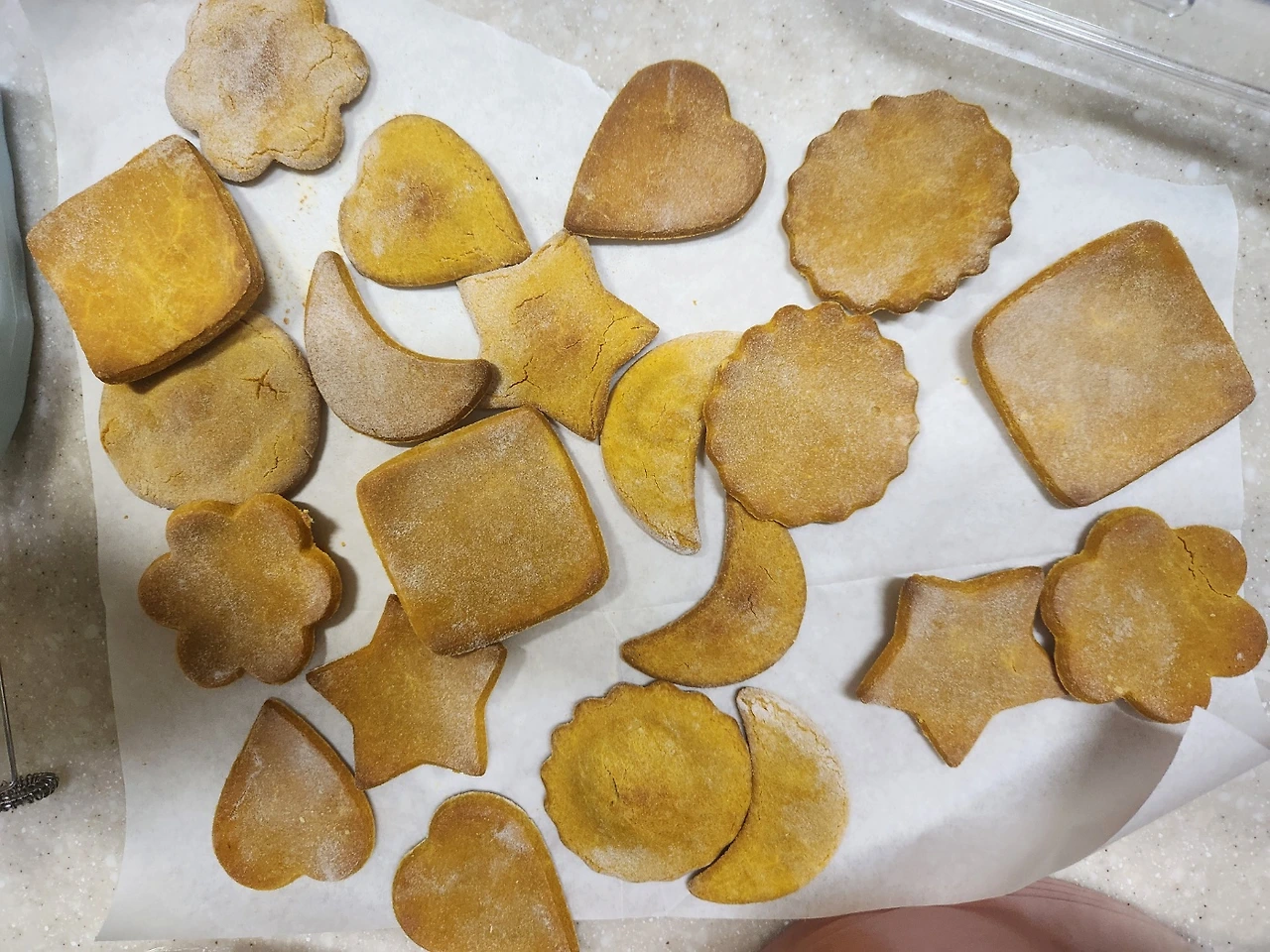 아내는 시루가 먹을 수 있는 쿠키를 준비했다. 모양은 그럴싸하다. 궁금해서 먹어봤는데 그냥 밀가루 맛이다, 아무 맛도 안 난다. 아내는 오래 살려면 이런 거를 먹어야 한단다.
