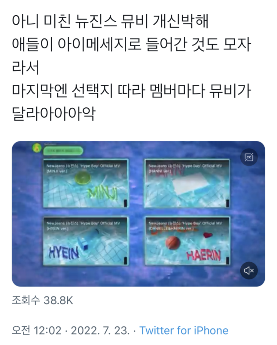 또 하나는 8/1데뷔 예정인 민희진 걸그룹 '뉴진스(newjeans)'의 두번째 공개된 'Hype Boy MV'.