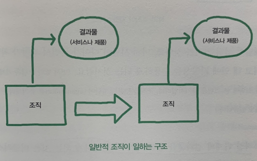 일반적인 조직이 일하는 구조 : 매달 결과물을 만들어낸다고 가정했을 때, 조직은 그대로이고 결과물만 주기적으로 찍어내는 형태. 저번 달의 조직과 이번 달의 조직은 차이가 없는 셈.