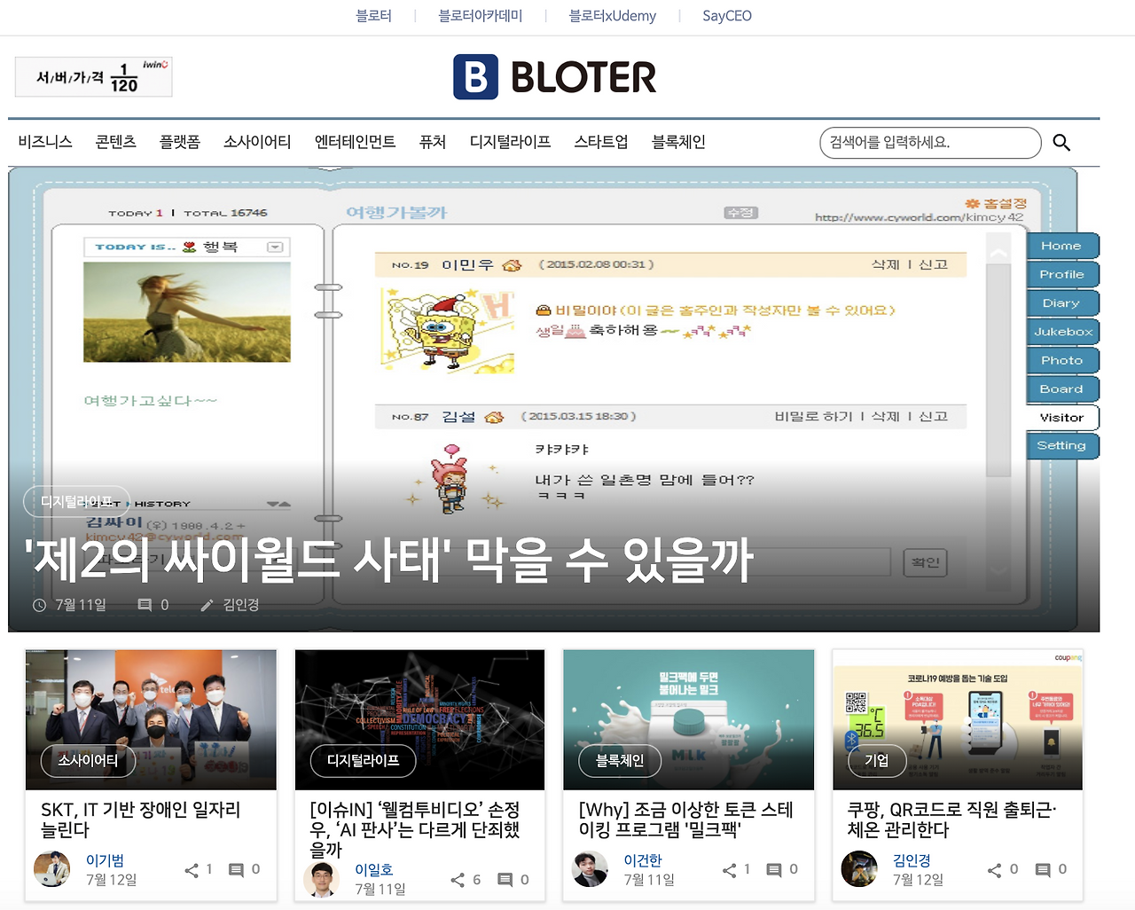 블로터의 특징은 IT업계 종사자의 시각에서 빠르게 트렌드를 캐치업할 수 있는 기사가 많다는 점이다. 겉핥기 식으로가 아닌 딥하게 이슈를 파악하고 주관적으로 보는 시각을 기를 수 있다는 점에서 위 사이트를 선호하는 편이다. 실제 나의 경우에는 블로터에서 보면서 알고 있던 지식이, 실제 면접 시 유용하게 인용할 수 있던 경험도 있다! 최근을 예로 들면 싸이월드 사태라든지, 며칠 전 발생한 페이스북 SDK이슈라든지.. 등등의 내용도 기사로 나와있어 볼 만하다.