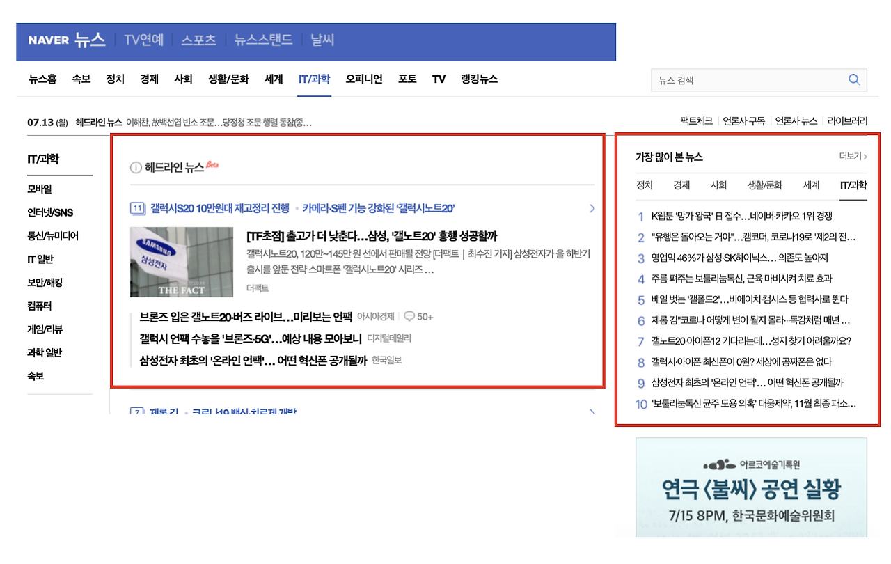 IT 뉴스 기사를 매일 보는 습관을 들이자. 네이버 뉴스의 IT/과학 섹션을 브라우저 홈에 두고 매일 아침에 쓱 훑어보는 것이다. 매일 기사가 업데이트되기 때문에 트렌드를 빠르게 파악하기가 좋다. 게다가 메인에는 헤드라인 뉴스를 모아서, 우측에는 많이 본 뉴스가 순위별로 나오기 때문에 관심이 가고 흥미 있는 내용을 바로바로 살펴볼 수 있다. 단점은 과학 관련 기사도 섞여 있다는 점과, 기사가 많아서 바쁠 땐 보기가 조금 부담스러울 수 있다는 점