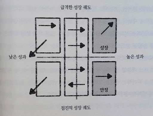 성장 관리 방식을 기반으로 두 유형의 팀원이 있다. '급격한 성장 궤도' & '점진적 성장 궤도' 팀장은 팀원들이 각자 무엇으로부터 동기를 얻는지 알아야 한다. 그리고 사람들 대부분은 삶과 경력 전반에 걸쳐 이 두 궤도를 왔다 갔다 한다.