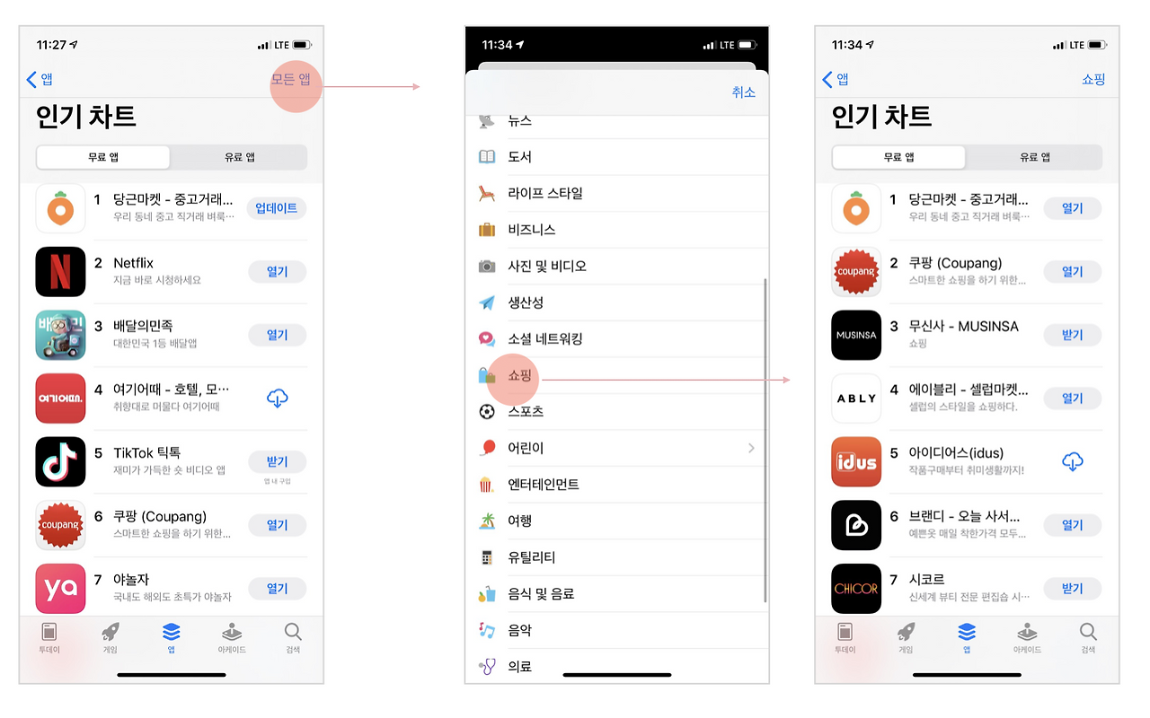 - 자사와 같은 카테고리로 분류된 앱스토어(혹은 구글플레이)의 앱 다운로드 or 사용자순위를 비교하여 선정합니다.