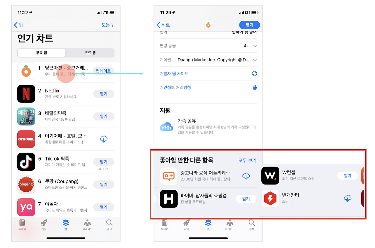 - 참고로 위에서 예시를 든 당근마켓이라면 네이버쇼핑이나 다음쇼핑 등등을 함께 볼 수도 있겠네요.