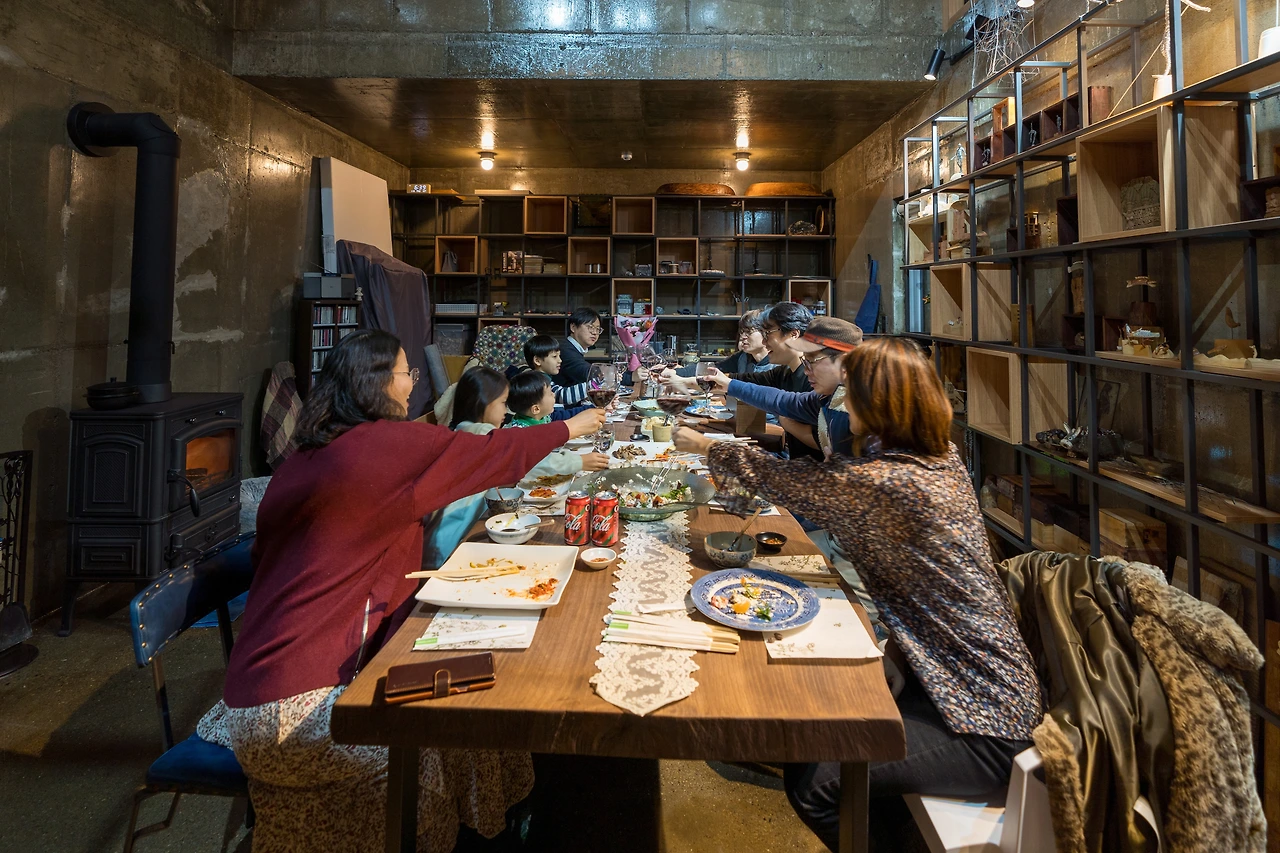 모담살롱은 조각가인 남편과 민화가인 아내가 성인인 딸과 함께 거주하는 주거공간이자, 작업실이다.