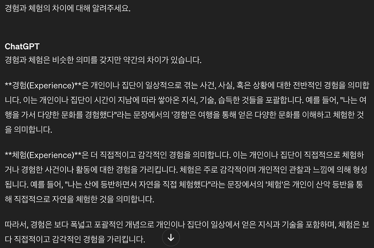 여기서 10가지를 다시 골라내야 한다. 어떤 단어들은 어느 정도 의미가 비슷한 것 같지만 디테일이 달라 보여서 토너먼트 식으로 붙여보고 골라보기로 했다. 경험과 체험, 긍정과 낙관, 배움과 성장, 자아와 자존감. 똑똑한 chatGPT에게 물어보며 나름 고심해서 골라본다.