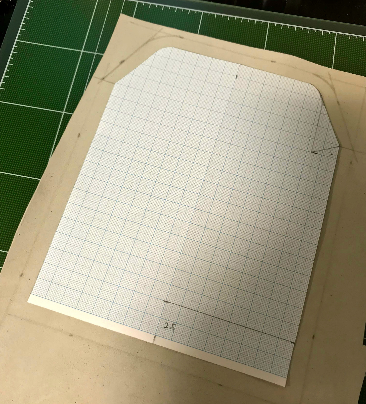 가방의 세로 길이를 결정짓는하단부 도안. 최하단 영역에서 접혀 들어갈 부분을 감안해 길이를 정했고 깔끔하게 오려 기본 준비를 마쳤다. 이후 만드는 과정에서 계속 느낀 것이지만 만들고 있는 가방이 내가 예상한 것보다 살짝 사이즈가 작았다. 재단 후에는 크기를 돌이킬 수 없기 때문에 초반의 도안 작업이 참으로 중요하다는 것을 배웠다.