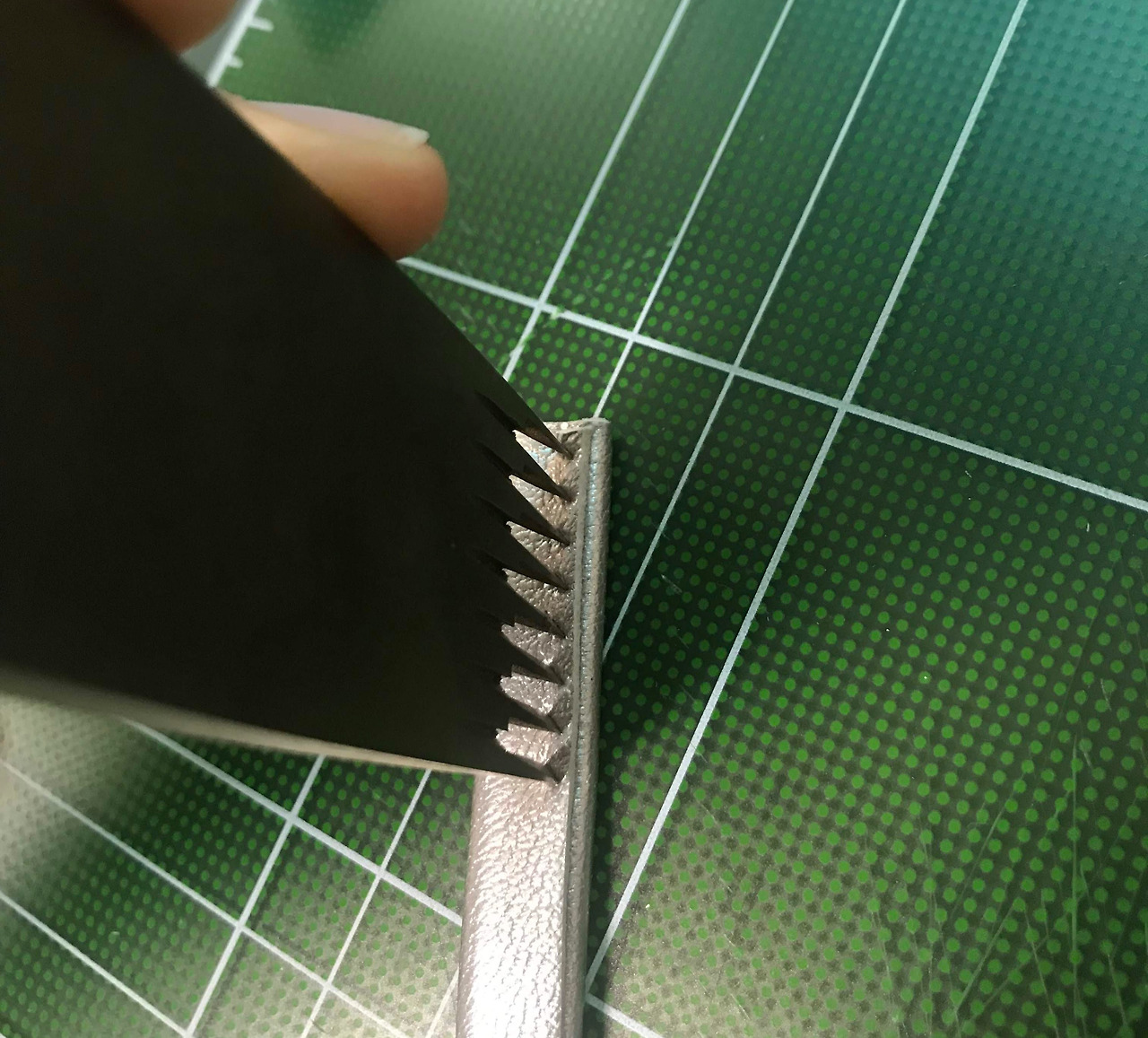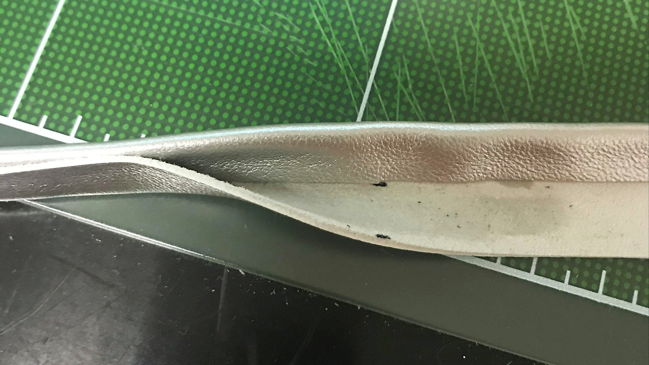 프레임 안에 본드를 요령껏 발라준 뒤 가죽을 사이로 밀어 넣어 부착하는 방식이다. 가죽용 본드가 아닌 다용도 본드를 다이소에서 따로 구입해 사용했다. 이 좁은 간격 사이에 본드를 칠해야 하기 때문에 본드 주입구도 최대한 가느다란 것으로 선택! 본드를 바른 뒤 역시나 바로 붙이지 않고 어느 정도 마른 뒤 가죽을 끼워준다.