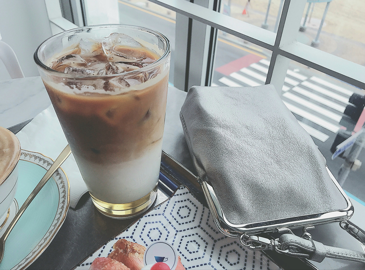 반짝반짝한 카페의 예쁜 식기와도 잘 어울렸던 실버 미니백 :)