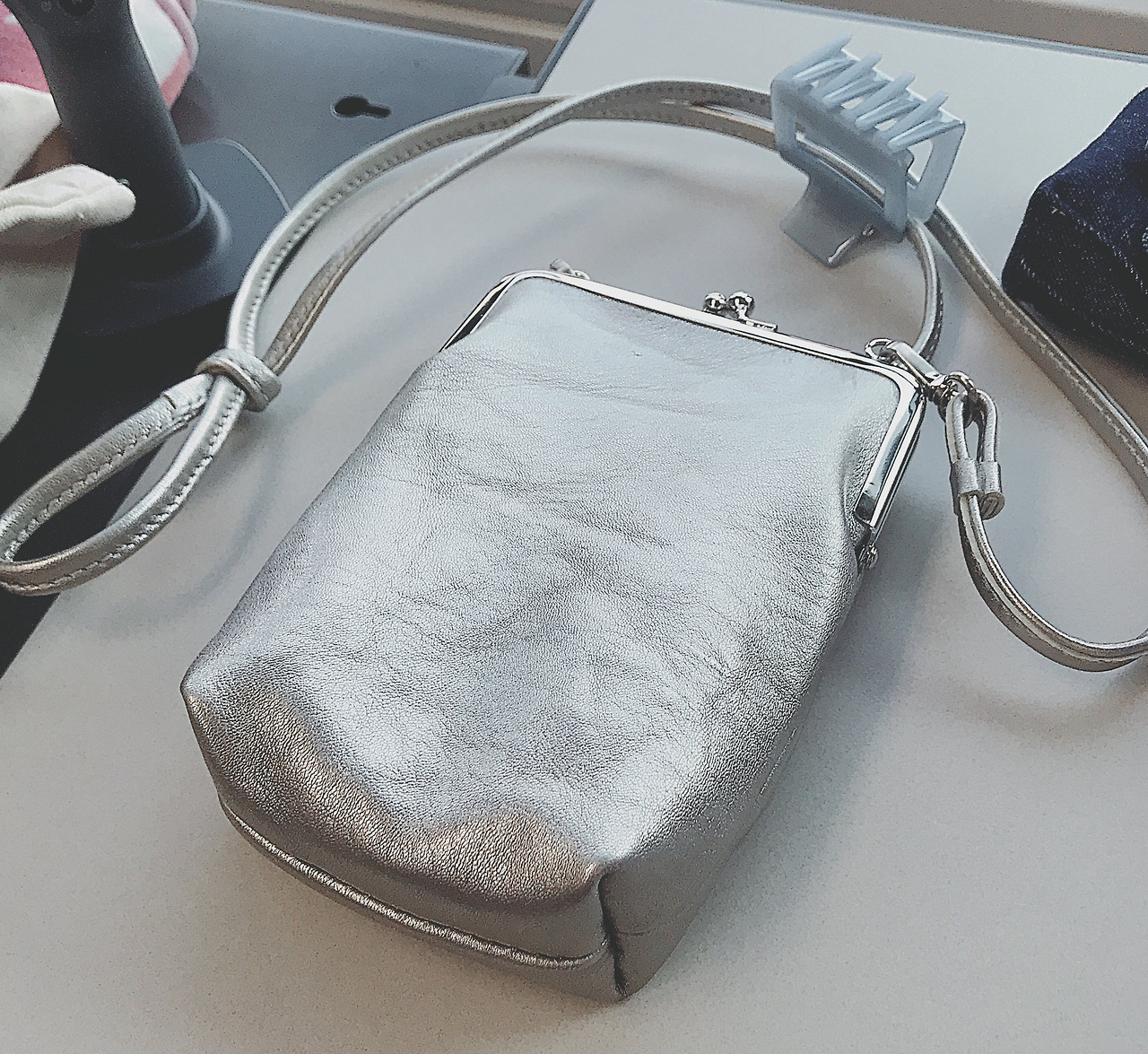 시즌이 지나 참 구하기가 어려운 (아직도 구할 수가 없는!) 미닛뮤트의 실버 코인드백이다. 이 가방을 참고하여 가죽부터 부자재까지 모두 유사한 것으로 준비했다. 이 가방에 사용된 가죽은 매우 고급으로 예상되는데 내가 사용한 가죽은 연습용이라 저렴한 편에 속하는 양가죽이다. 부자재의 경우 니켈 소재의 사틴 처리된 것을 찾아 여러 부자재 가게에 발품을 팔았는데, 니켈 사틴의 프레임은 결국 구할 수가 없어 유일하게 은으로 대체한 부분이다.