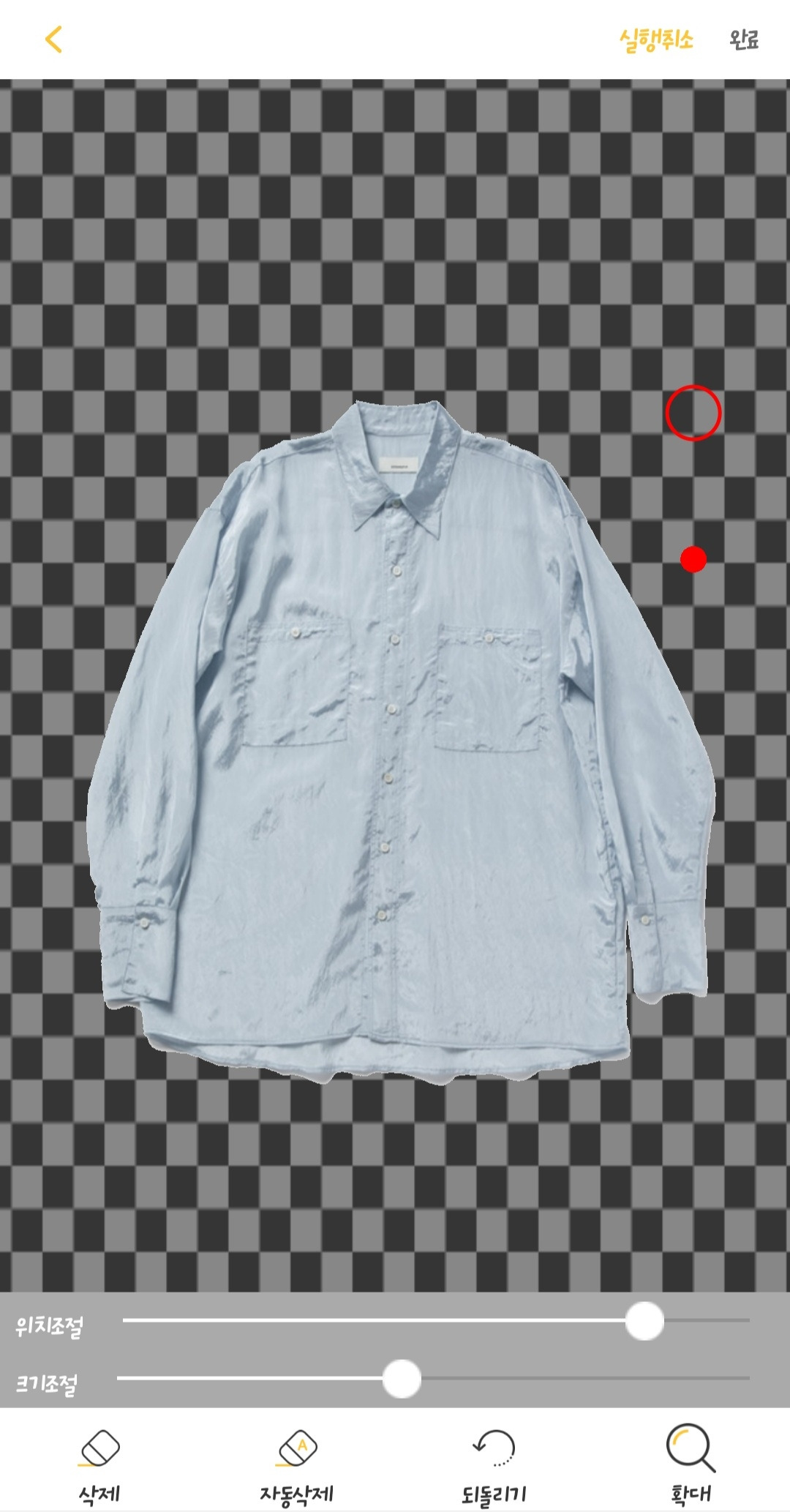 배경 자동삭제 기능화면 (좌) & 옷 등록 화면 (우)