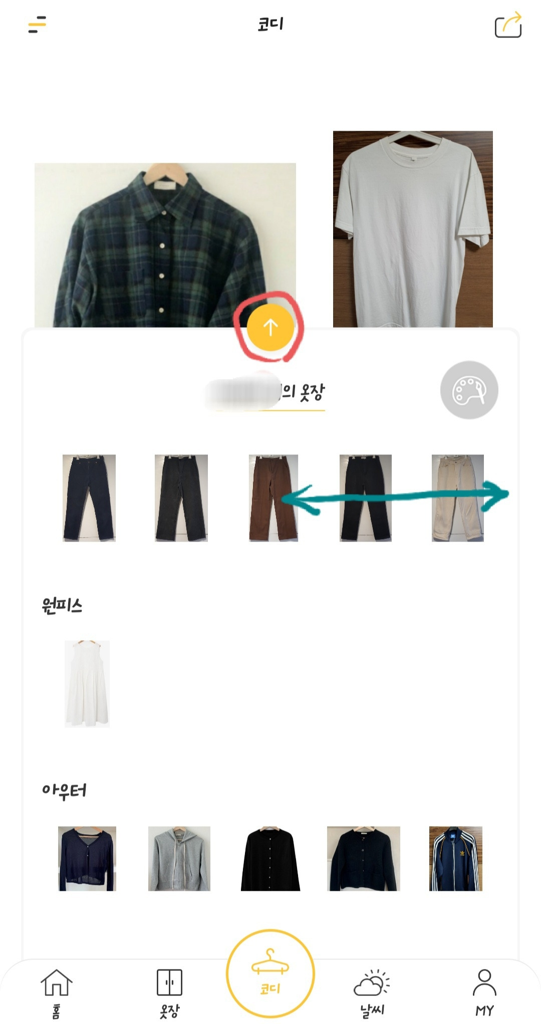 나는 기분이 좋은 날이나 중요한 약속이 있는 전날에는 입을 옷을 미리 코디하는 것을 좋아하는데, 이제는 침대에서 몸을 일으켜 굳이 옷장을 열지 않더라도 이 앱을 캔버스에서 옷을 셀렉해 코디할 수 있을 것 같다. (빨간색으로 표시한 부분을 위로 스와이프 하면 내 옷장 전체 아이템을 볼 수 있고, 초록색으로 표시한 부분을 좌우로 스와이프 하면 카테고리별 아이템을 고를 수 있다. 아이템이 많은 경우에 좌우 스와이프는 좀 지치더라;)